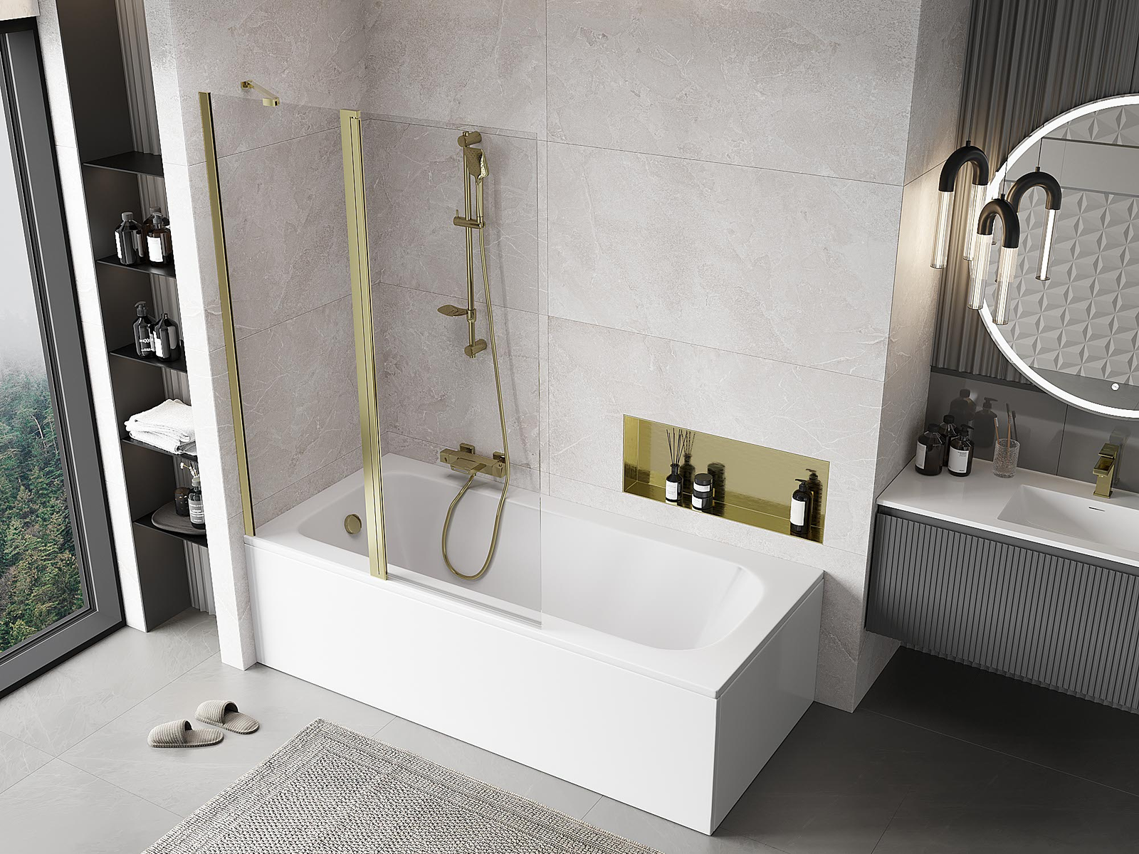 Protección efectiva contra el derrame de agua durante el baño. La mampara tiene juntas que se ajustan perfectamente a la superficie del vidrio y al borde de la bañera. Solución funcional que garantiza seguridad y facilidad de limpieza.
