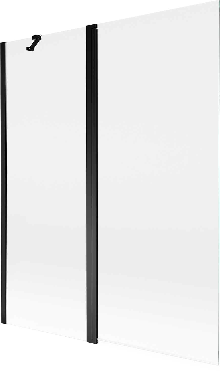 Paraván hecho de dos hojas con posibilidad de plegado. Esta solución permite ahorrar más espacio en el baño y permite el uso libre del espacio restante cuando no estamos usando la zona de baño.