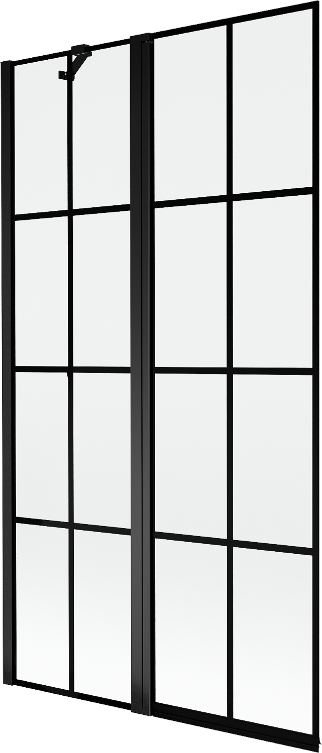 Paraván hecho de dos hojas con posibilidad de plegado. Esta solución permite ahorrar más espacio en el baño y permite el uso libre del espacio restante cuando no estamos usando la zona de baño.