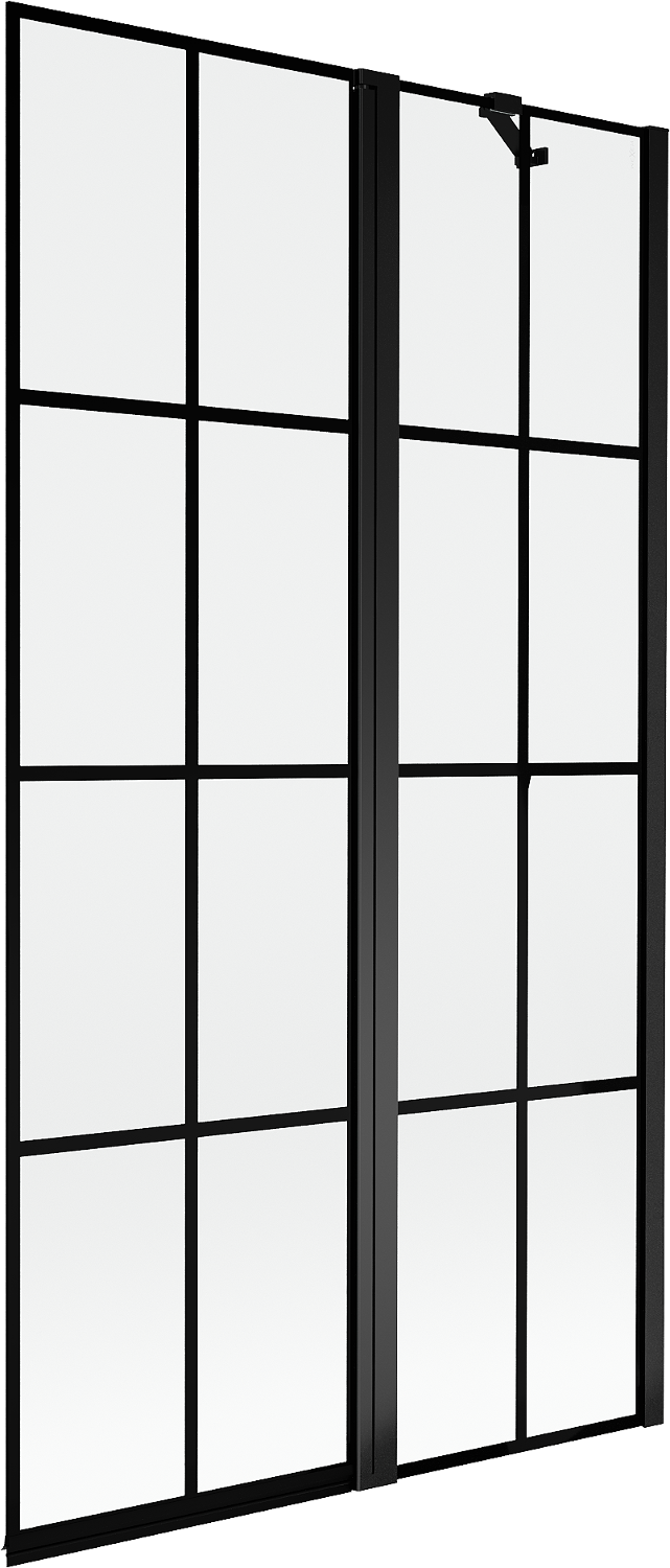 Paraván hecho de dos hojas con posibilidad de plegado. Esta solución permite ahorrar más espacio en el baño y permite el uso libre del espacio restante cuando no estamos usando la zona de baño.