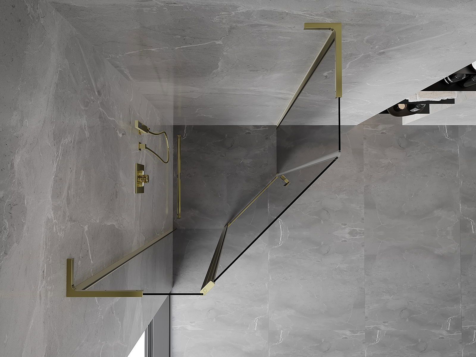 Mexen Mist L cabina de ducha pentagonal abatible 80 x 80 cm, transparente, dorado - 8A8L-080-080-50-00