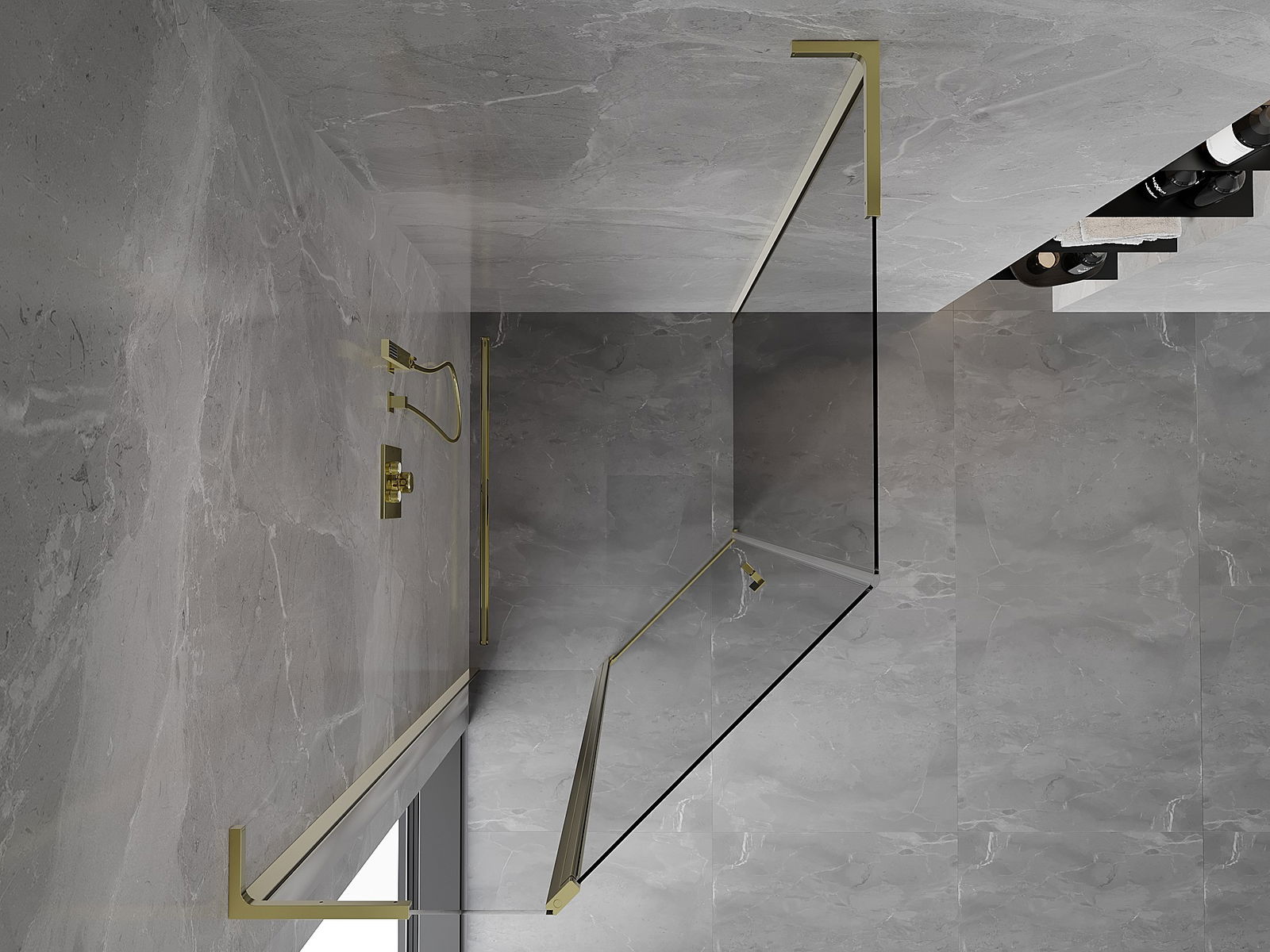 Mexen Mist L cabina de ducha pentagonal asimétrica abatible 90 x 100 cm, transparente, dorada - 8A8L-090-100-50-00