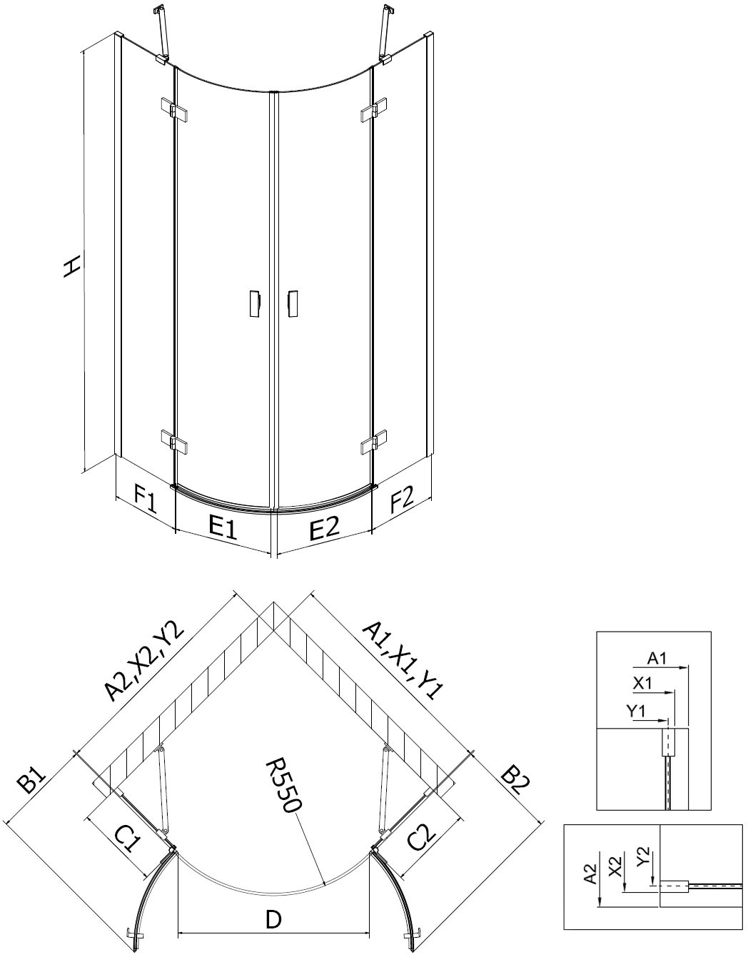 Las puertas abatibles permiten la máxima libertad durante su uso. Cuentan con bisagras sólidas hechas de un material duradero, que no presentan dificultades para mantener la limpieza y permiten un fácil acceso al interior de la cabina.