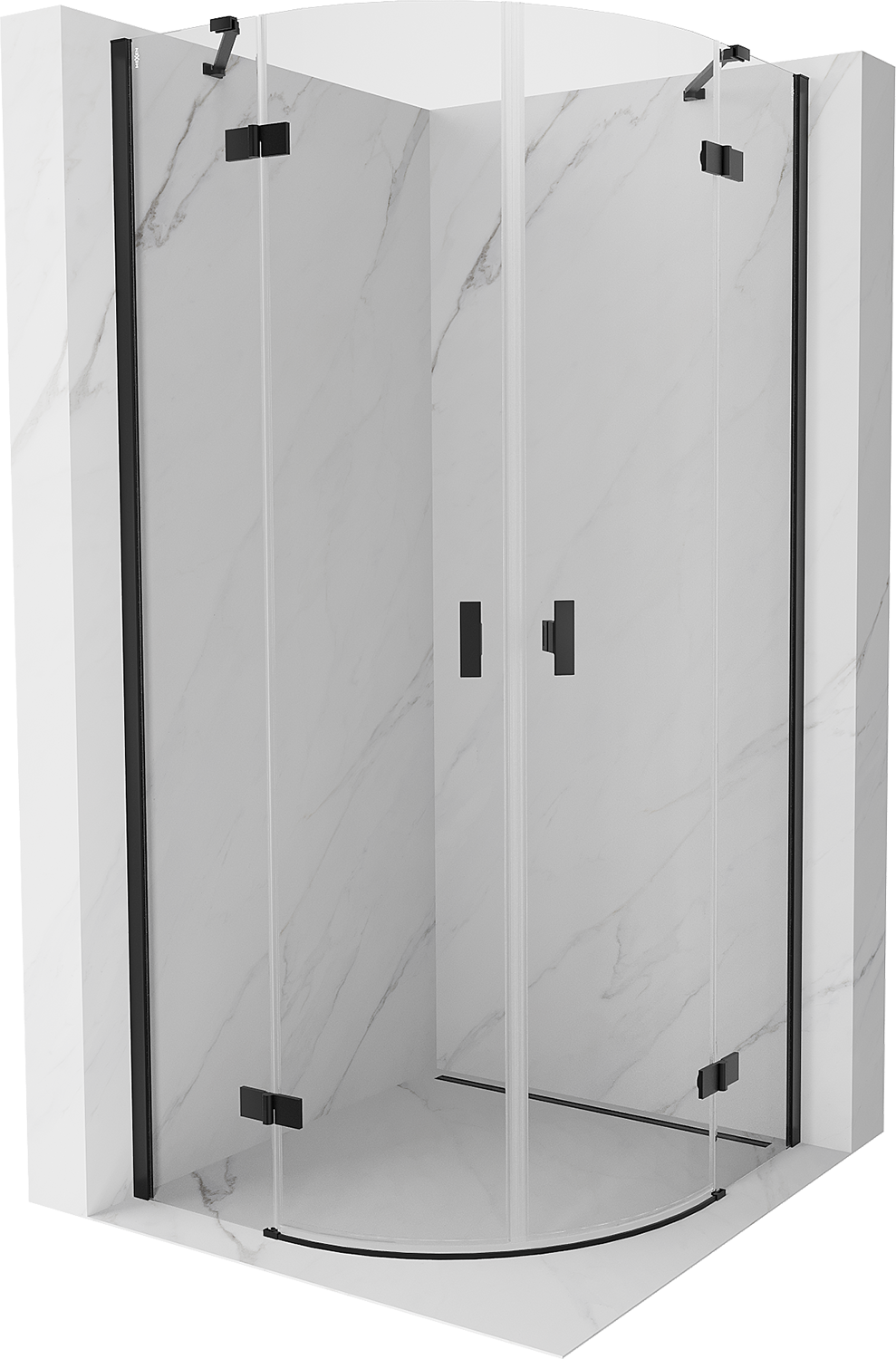 Mexen Mist cabina de ducha semicircular abatible 70 x 70 cm, transparente, negra - 8A33-070-070-70-00