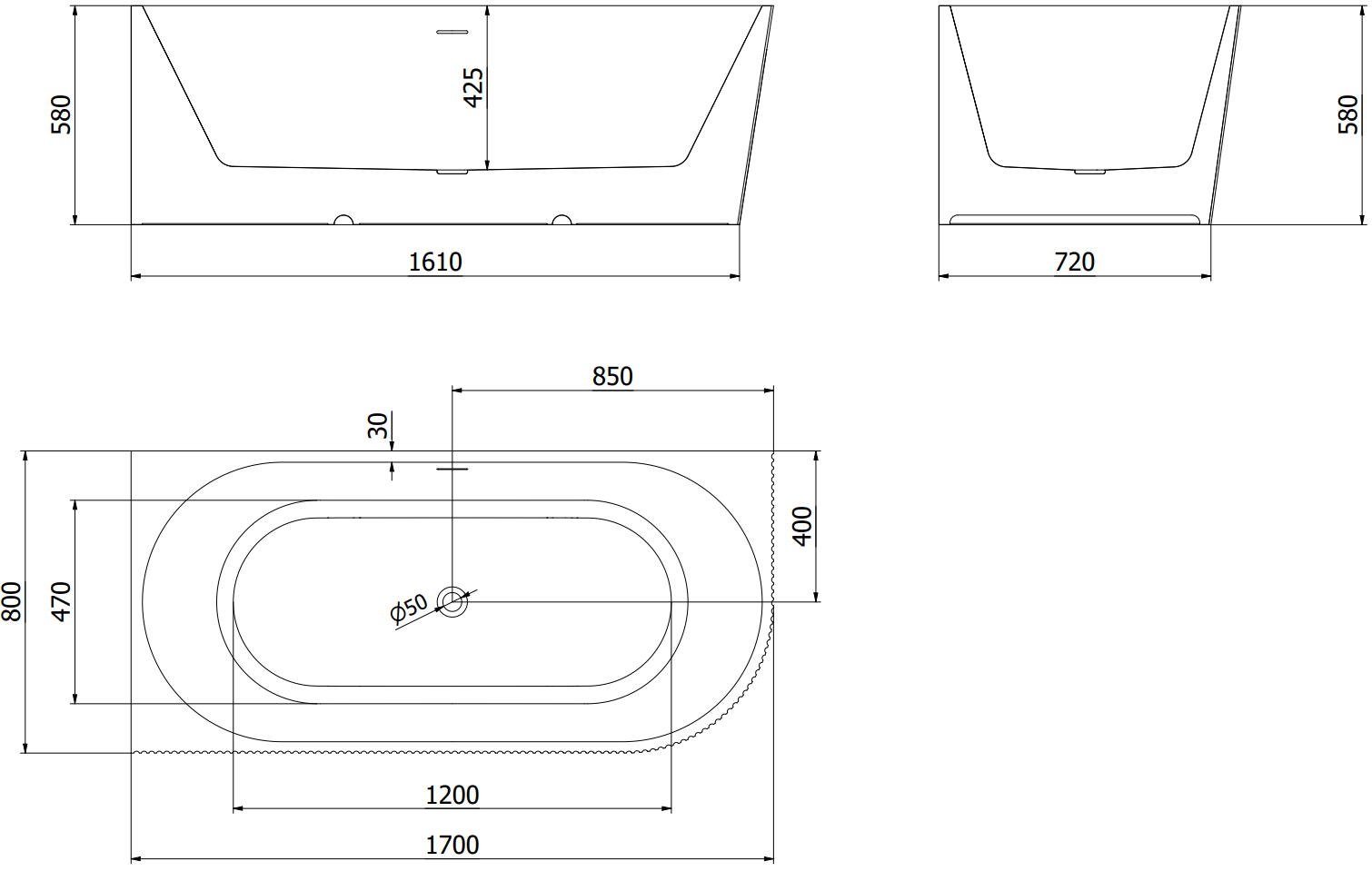 El agujero de desbordamiento se llama "agujero de seguridad". A través de él, el exceso de agua sale, protegiendo el baño de inundaciones. Es una solución segura y práctica que permite disfrutar del baño sin preocuparse por el aumento del nivel del agua.