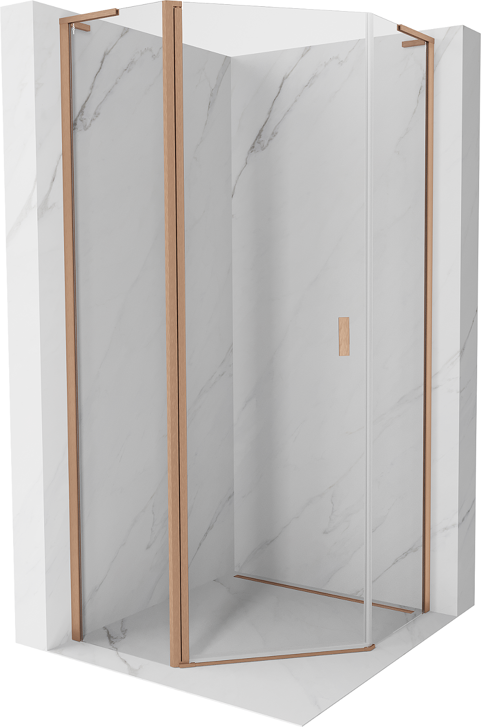 Mexen Mist L cabina de ducha pentagonal plegable 80 x 80 cm, transparente, cobre cepillado - 8A8L-080-080-65-00