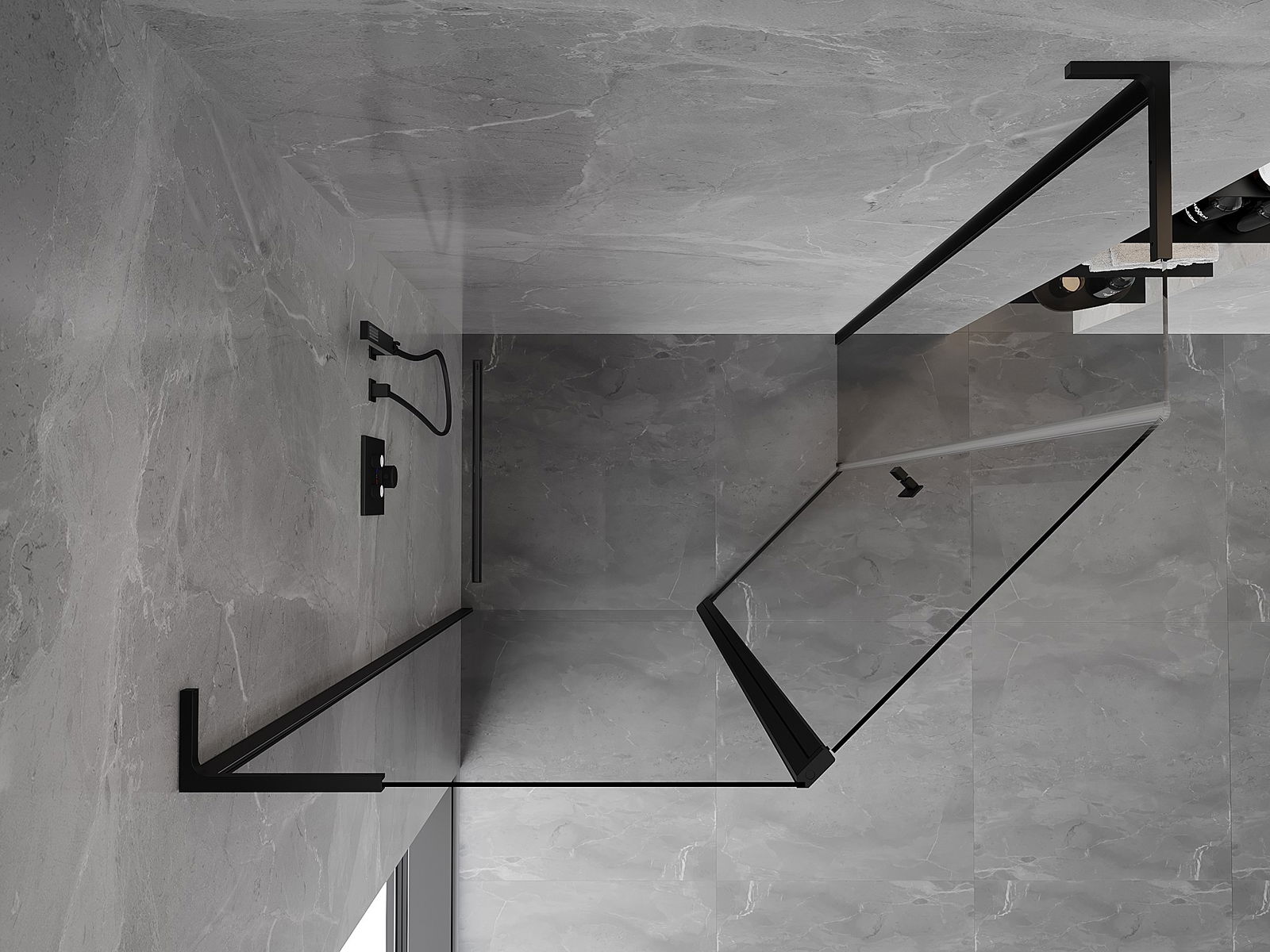 Mexen Mist L cabina de ducha pentagonal asimétrica abatible 90 x 80 cm, transparente, negra - 8A8L-090-080-70-00