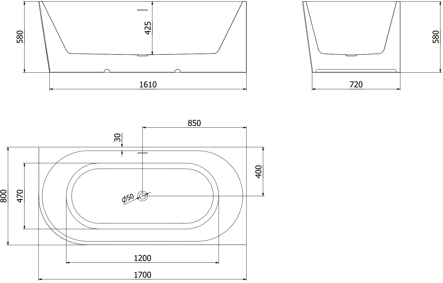 El agujero de desbordamiento se llama "agujero de seguridad". A través de él, el exceso de agua sale, protegiendo el baño de inundaciones. Es una solución segura y práctica que permite disfrutar del baño sin preocuparse por el aumento del nivel del agua.