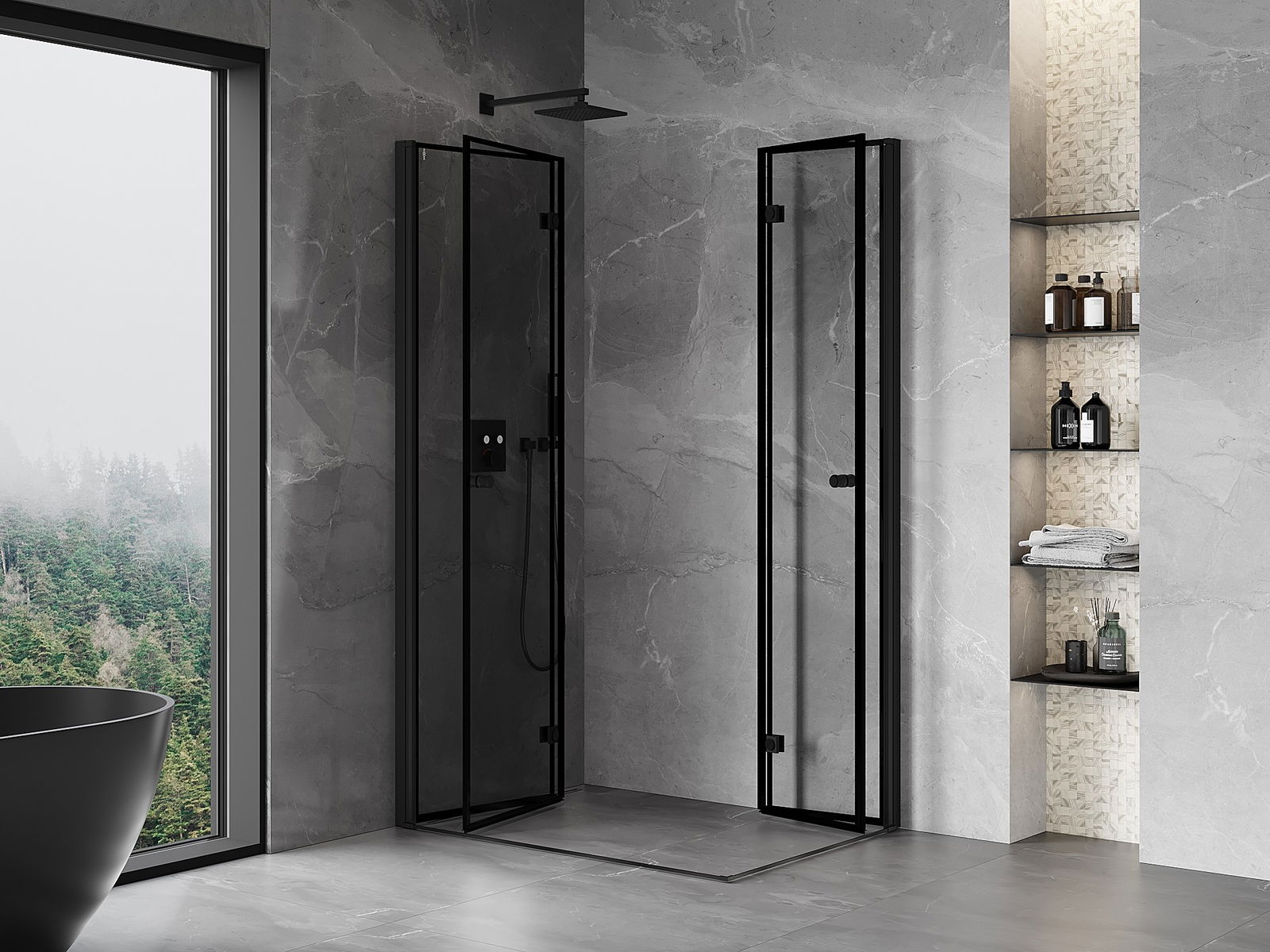 Mexen Mist-F Duo cabina de ducha plegable izquierda 100 x 95 cm, marco negro, negro - 8A6-100L-095P-70-70