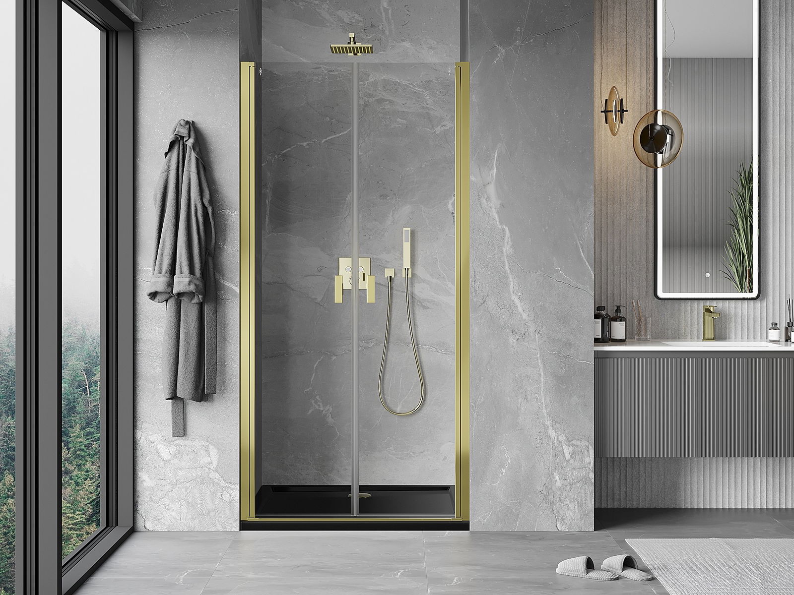 Las puertas abatibles permiten la máxima libertad durante su uso. Cuentan con bisagras sólidas hechas de un material duradero, que no presentan dificultades para mantener la limpieza y permiten un fácil acceso al interior de la cabina.