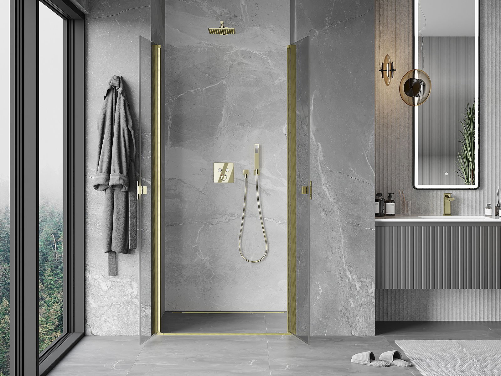 Las puertas abatibles permiten la máxima libertad durante su uso. Cuentan con bisagras sólidas hechas de un material duradero, que no presentan dificultades para mantener la limpieza y permiten un fácil acceso al interior de la cabina.