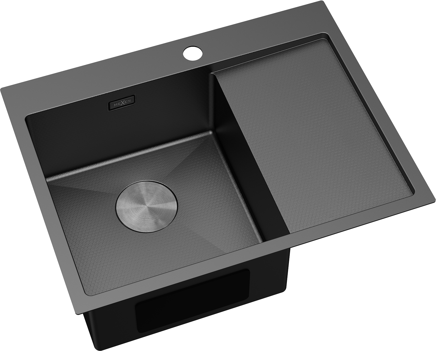 • Mexen Exar fregadero de acero inoxidable de 1 cubeta con escurridor, izquierdo 620 x 480 mm, negro HC - 6431621005L-70HC