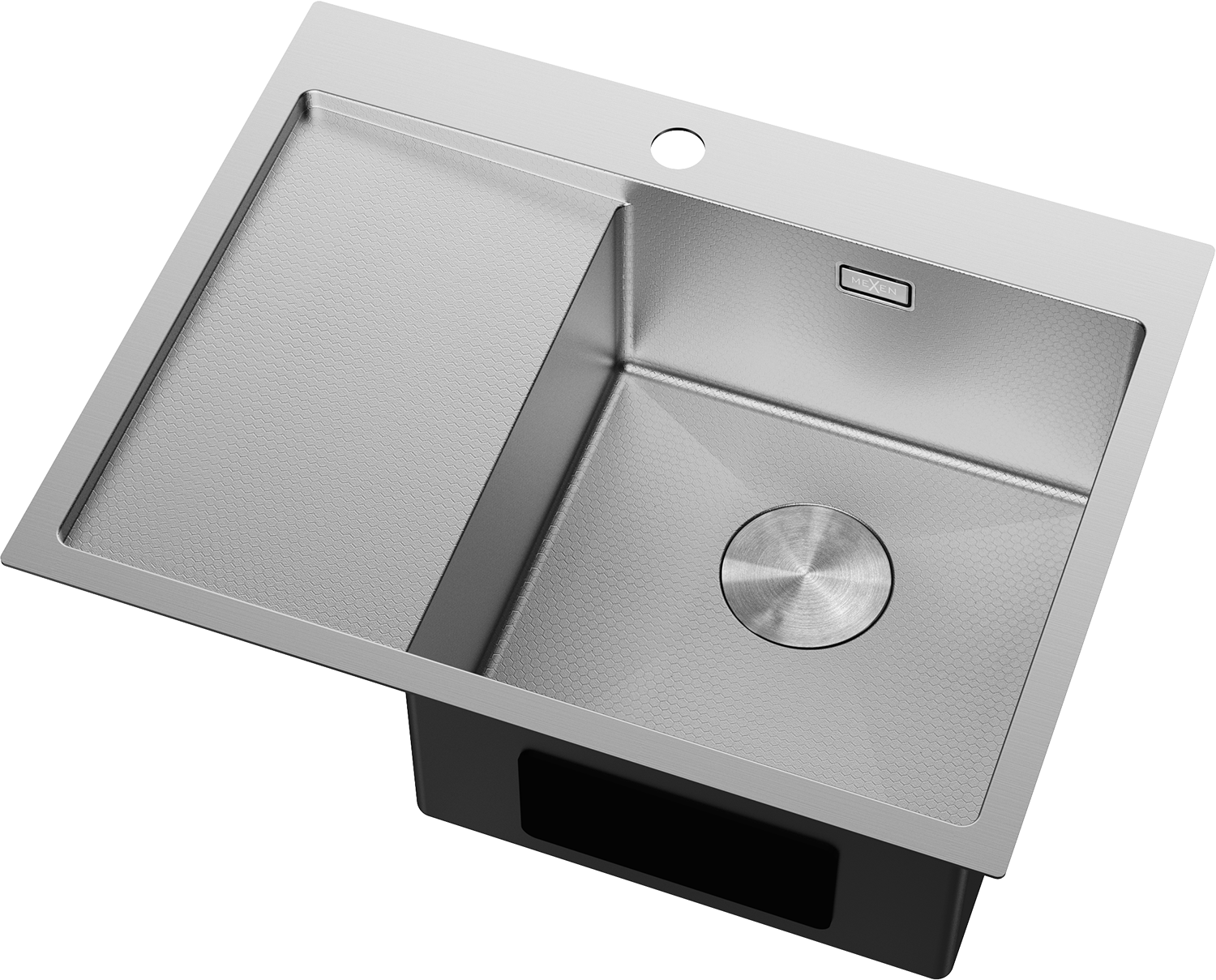 Mexen Exar fregadero de acero de 1 seno con escurridor, derecho 620 x 480 mm, inox HC - 6432621005P-01HC