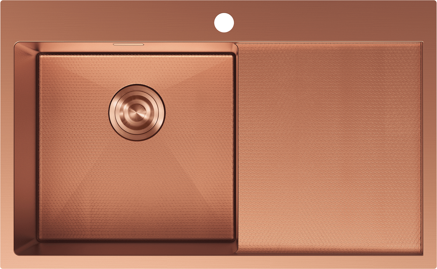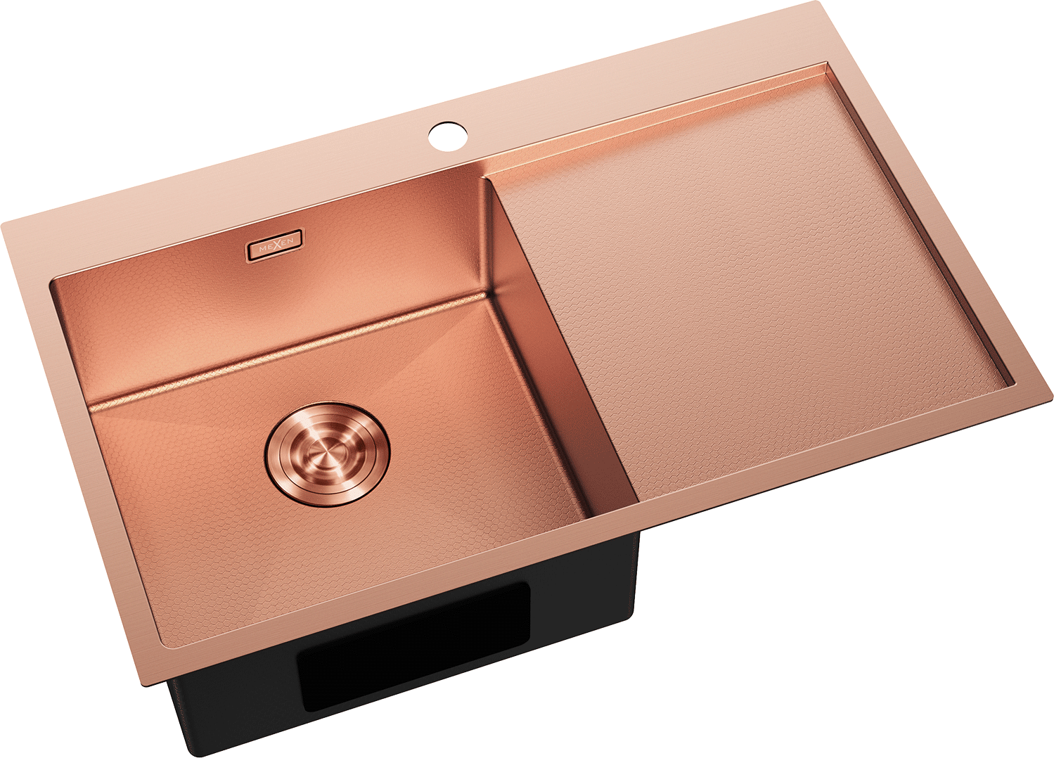 Mexen Exar fregadero de acero inoxidable de 1 cubeta con escurridor, izquierdo 780 x 480 mm, cobre HC - 6433781010L-65HC