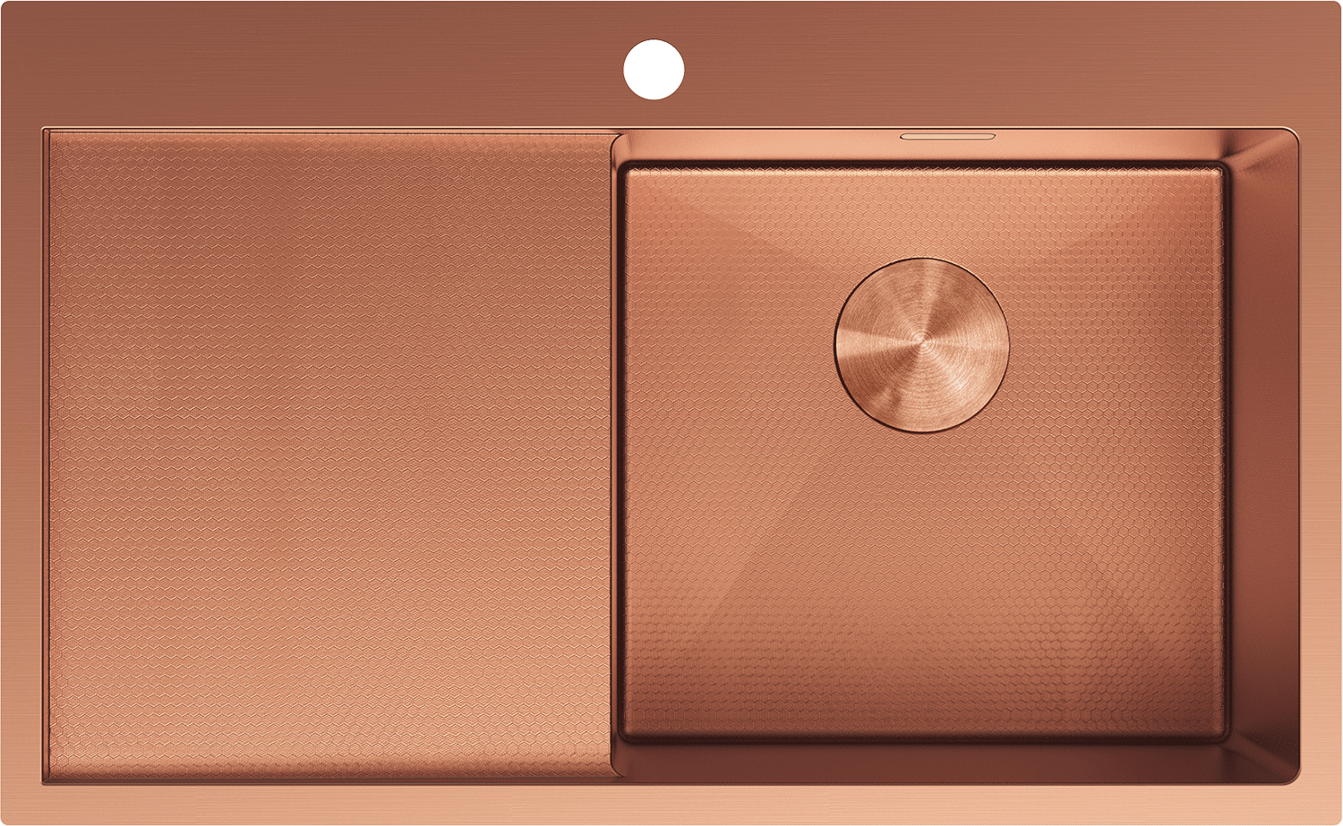 Mexen Exar fregadero de acero inoxidable de 1 seno con escurridor, derecho 780 x 480 mm, cobre HC - 6434781010P-65HC