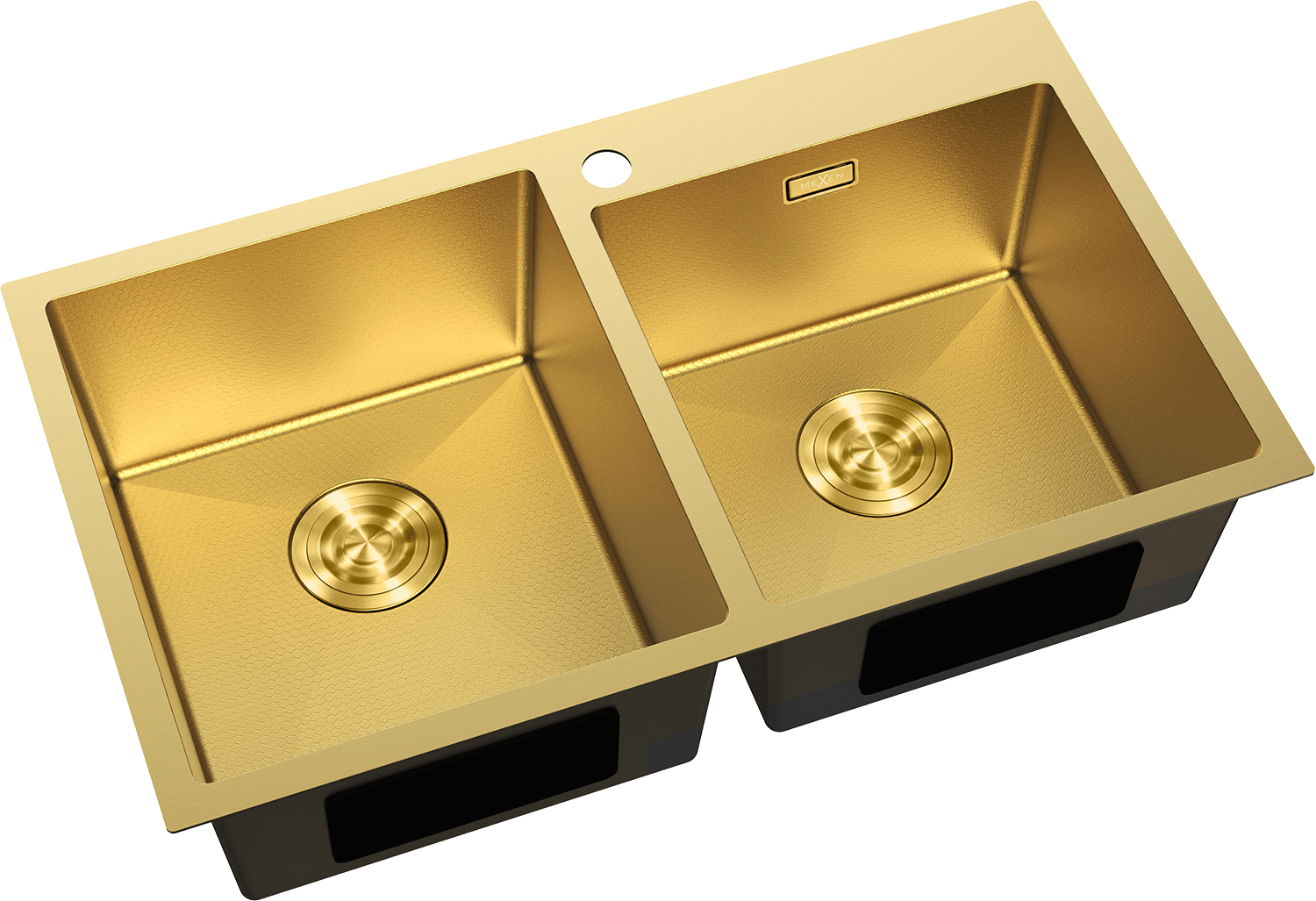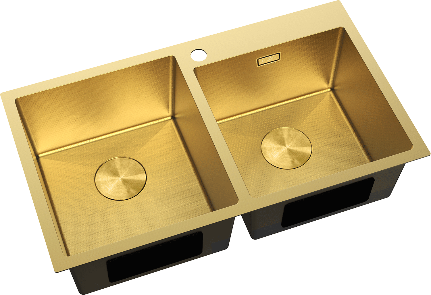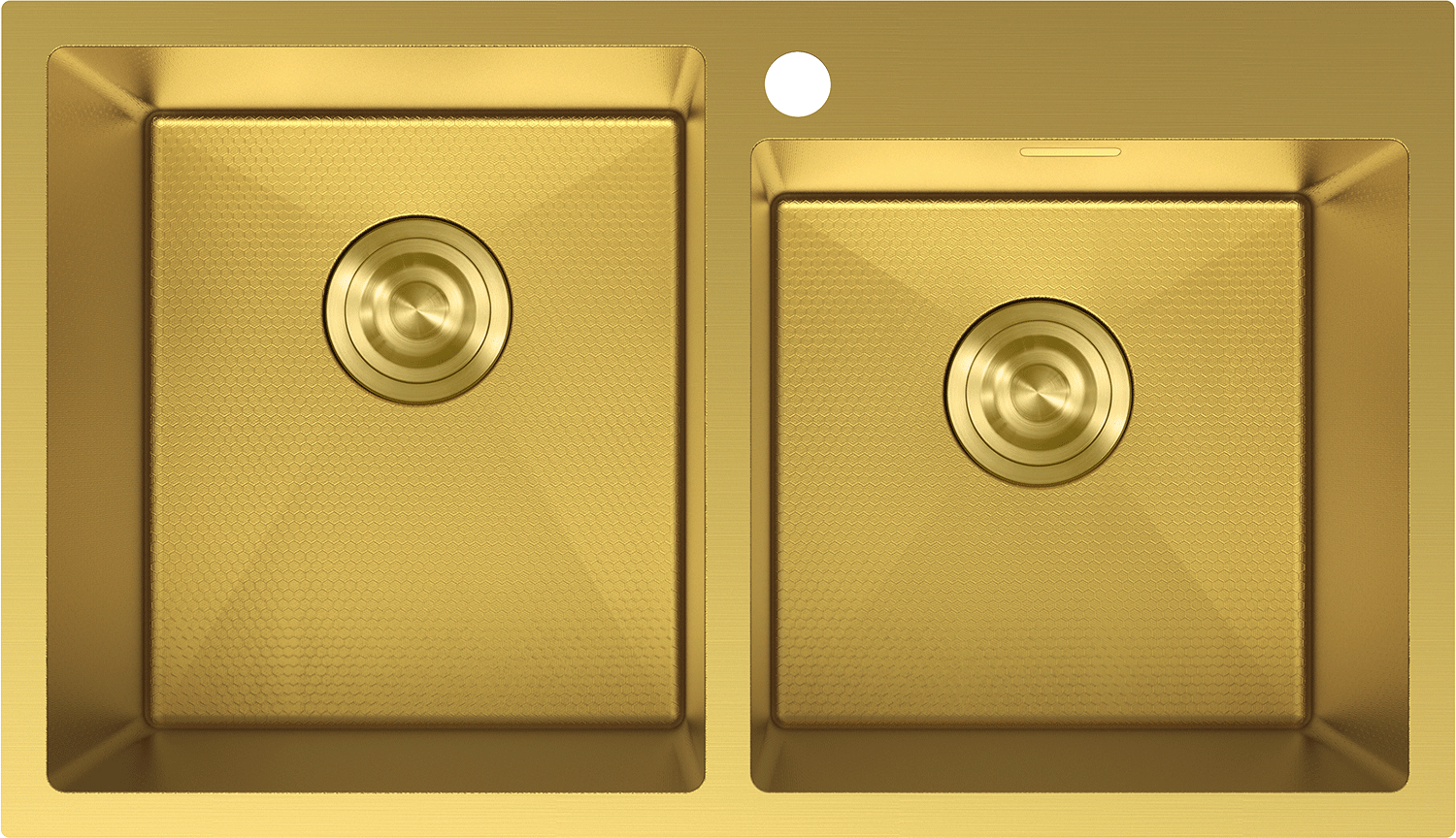 Mexen Xorin fregadero de acero de 2 compartimentos 780 x 450 mm, dorado HC - 6441782000-55HC