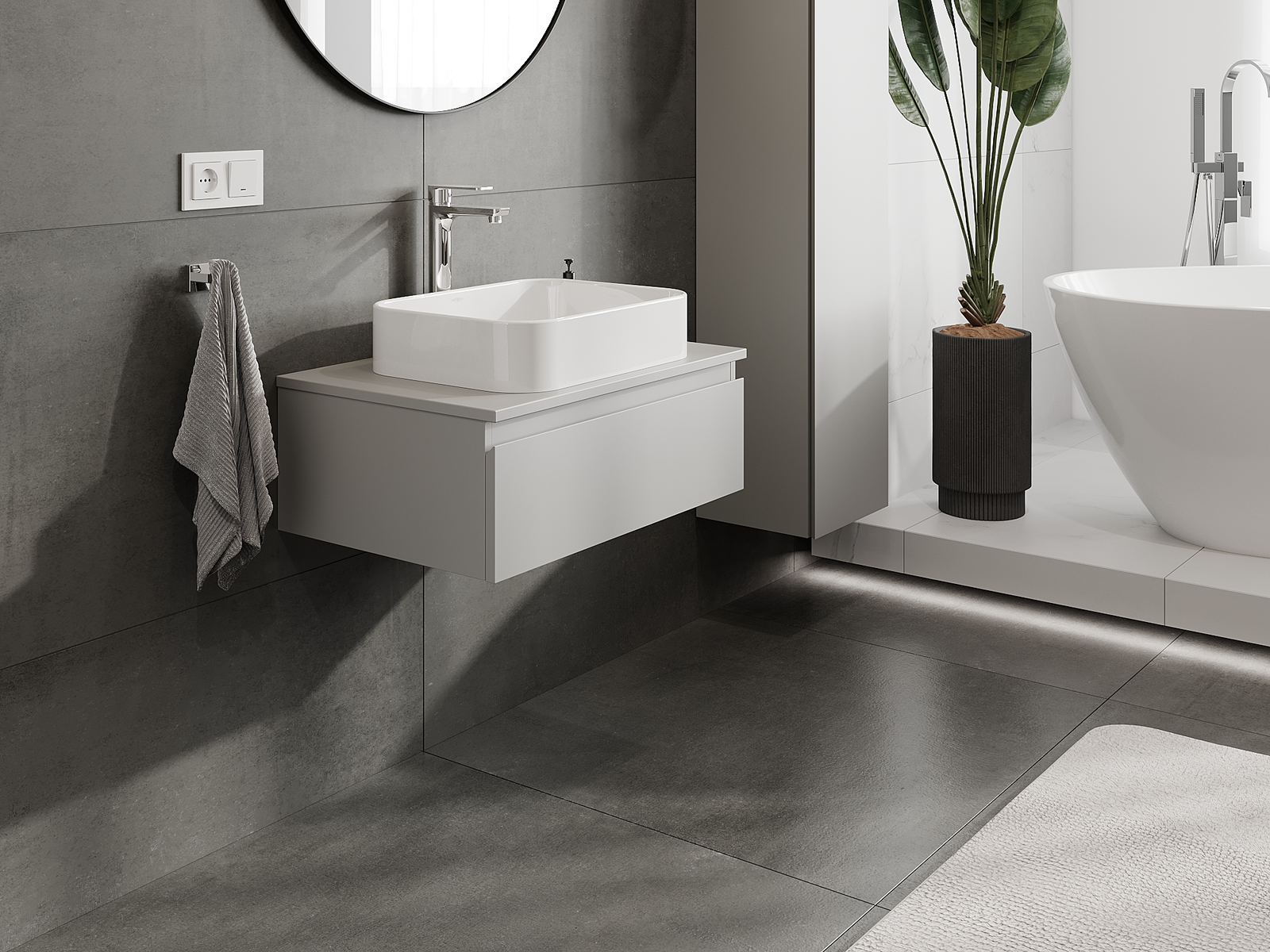 Nuestros muebles de baño modulares se pueden combinar en diferentes configuraciones de color, lo que permite una personalización completa. Se puede elegir tanto el aspecto como las funciones de los distintos elementos, lo que permite adaptar los muebles a las propias preferencias estilísticas y de uso.