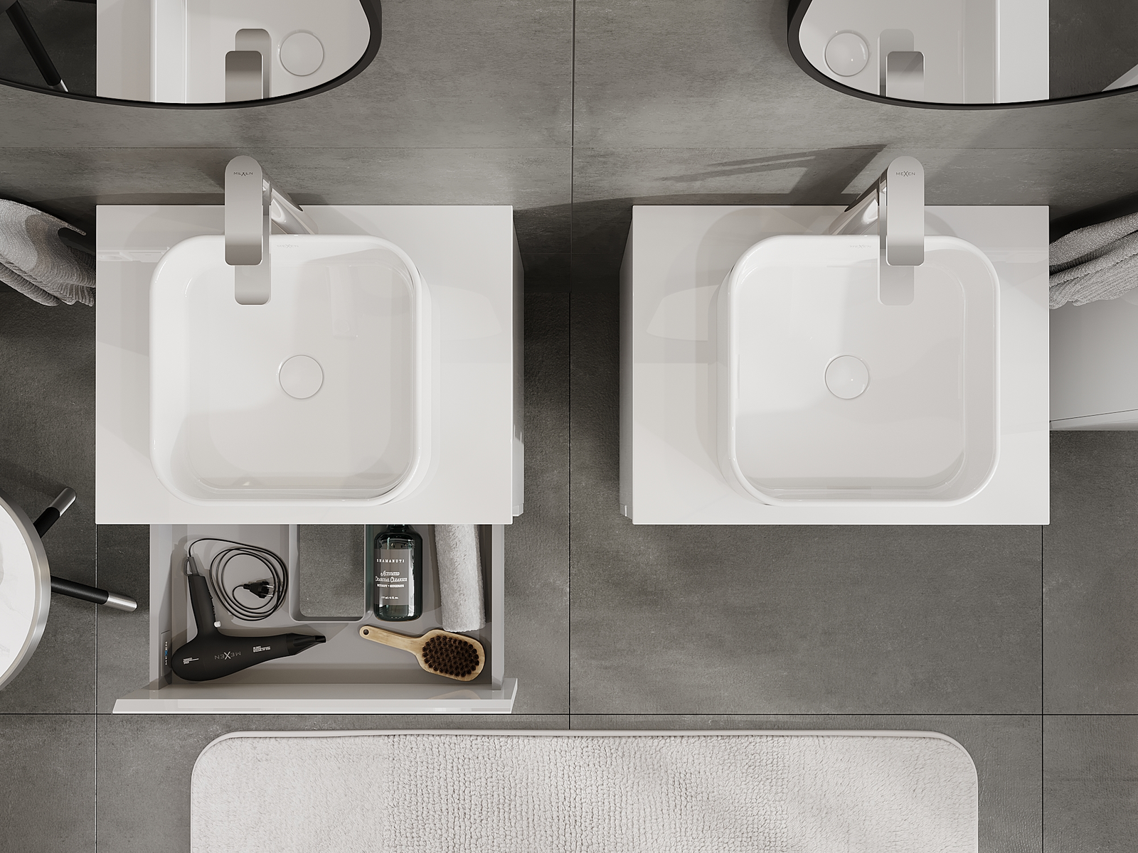 El cuerpo del gabinete se entrega completamente ensamblado, lo que significa máxima comodidad y ahorro de tiempo. No tienes que pasar horas ensamblando el mueble, solo necesitas instalarlo en el lugar elegido en el baño. Es la solución ideal para personas que valoran un montaje rápido y un efecto inmediato.