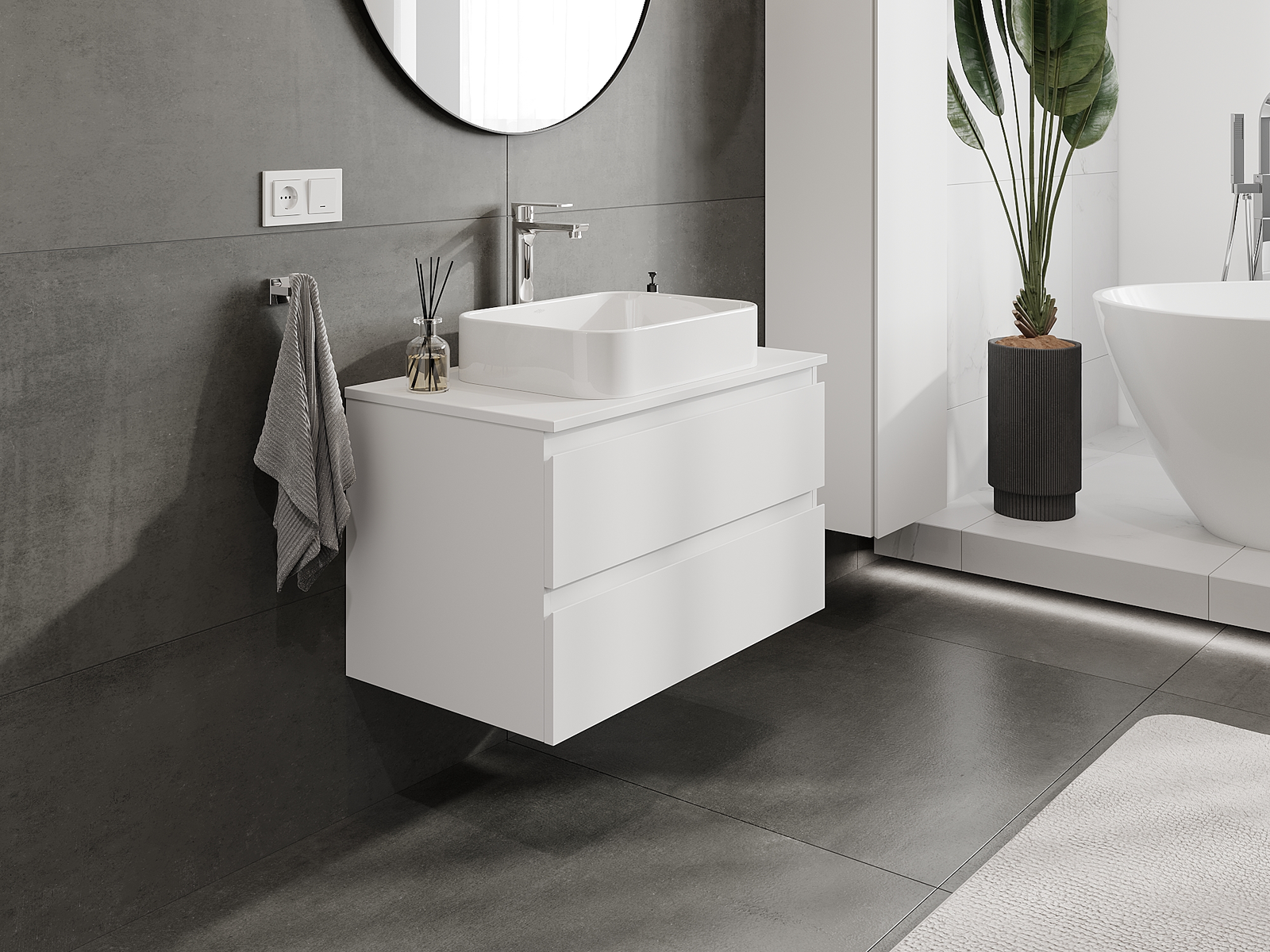 El cuerpo del gabinete se entrega completamente ensamblado, lo que significa máxima comodidad y ahorro de tiempo. No tienes que pasar horas ensamblando el mueble, solo necesitas instalarlo en el lugar elegido en el baño. Es la solución ideal para personas que valoran un montaje rápido y un efecto inmediato.