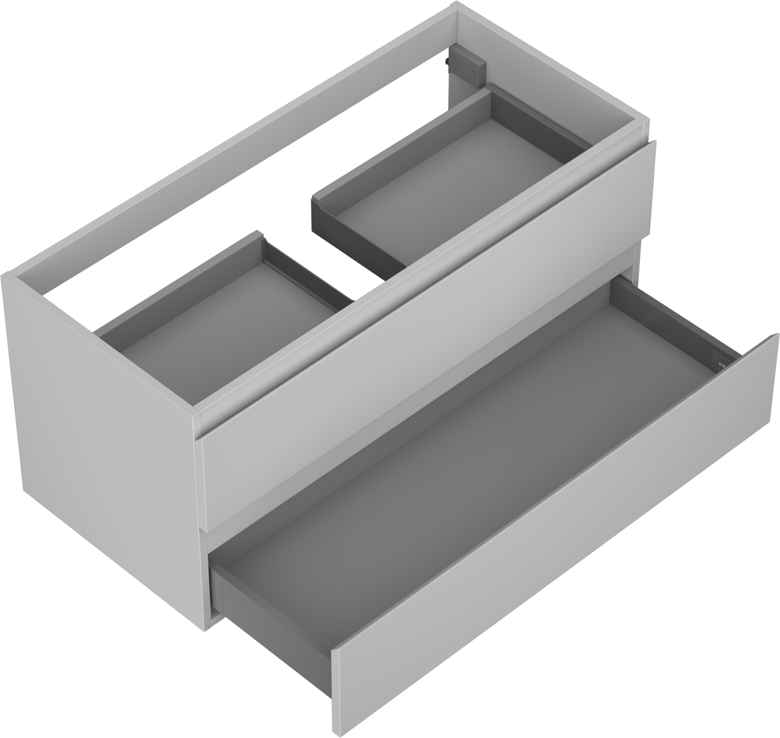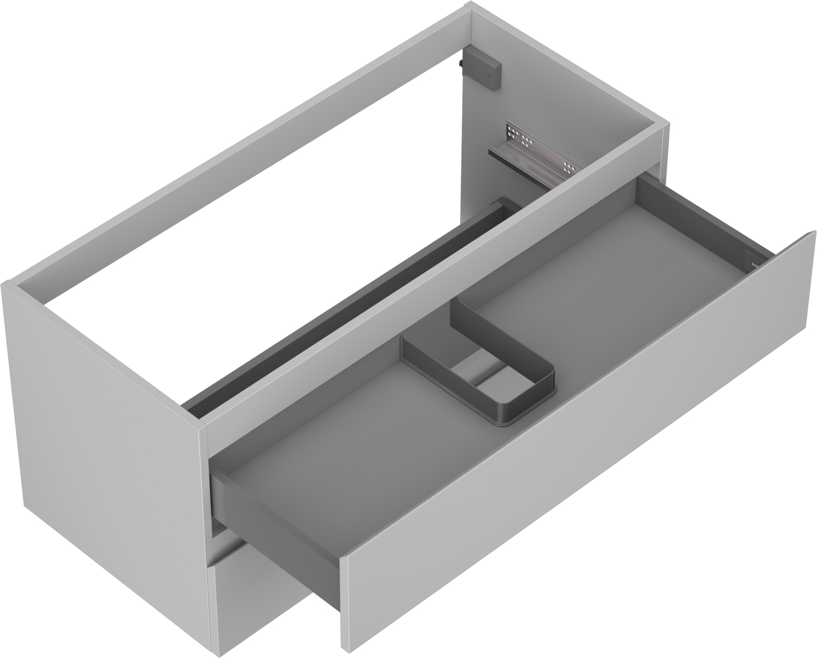 El corte en el cajón está diseñado de tal manera que pueda alojar el sifón, que es necesario en las instalaciones de lavabos. Gracias a esto, el mueble puede ser montado de manera completamente funcional, sin la necesidad de renunciar al espacio en el cajón en favor de la instalación.