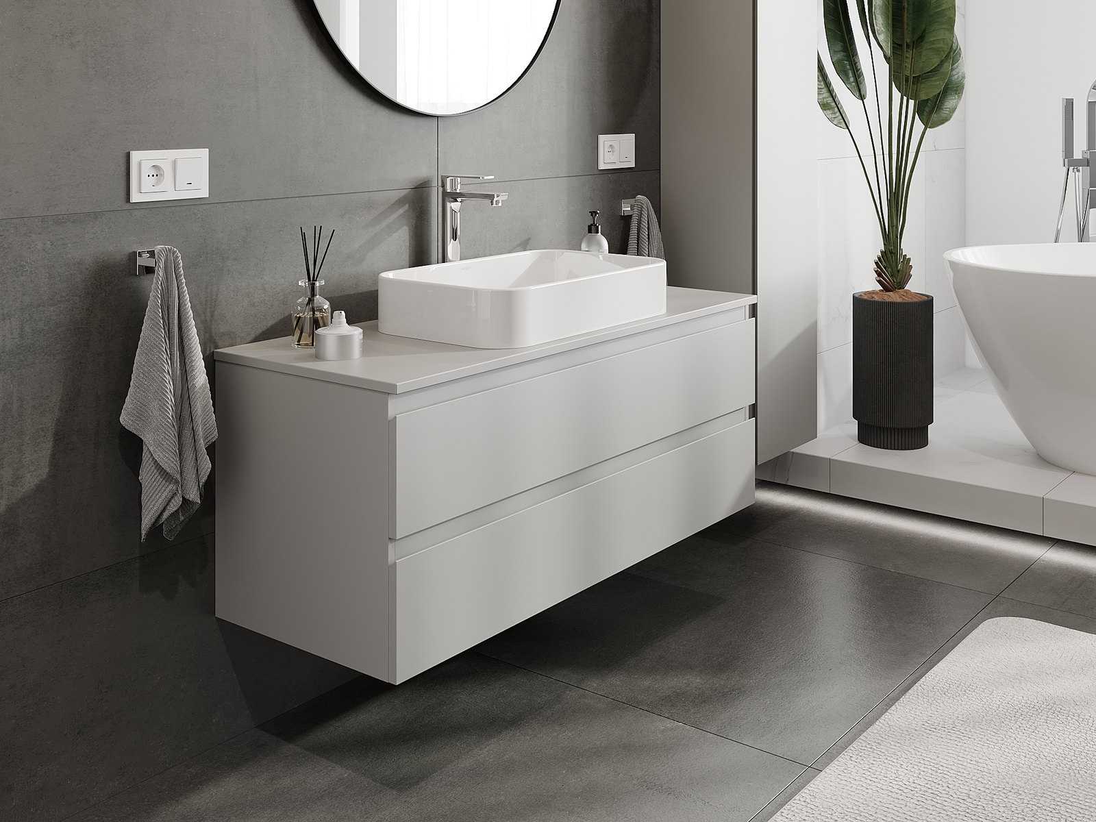 Nuestros muebles de baño modulares se pueden combinar en diferentes configuraciones de color, lo que permite una personalización completa. Se puede elegir tanto el aspecto como las funciones de los distintos elementos, lo que permite adaptar los muebles a las propias preferencias estilísticas y de uso.