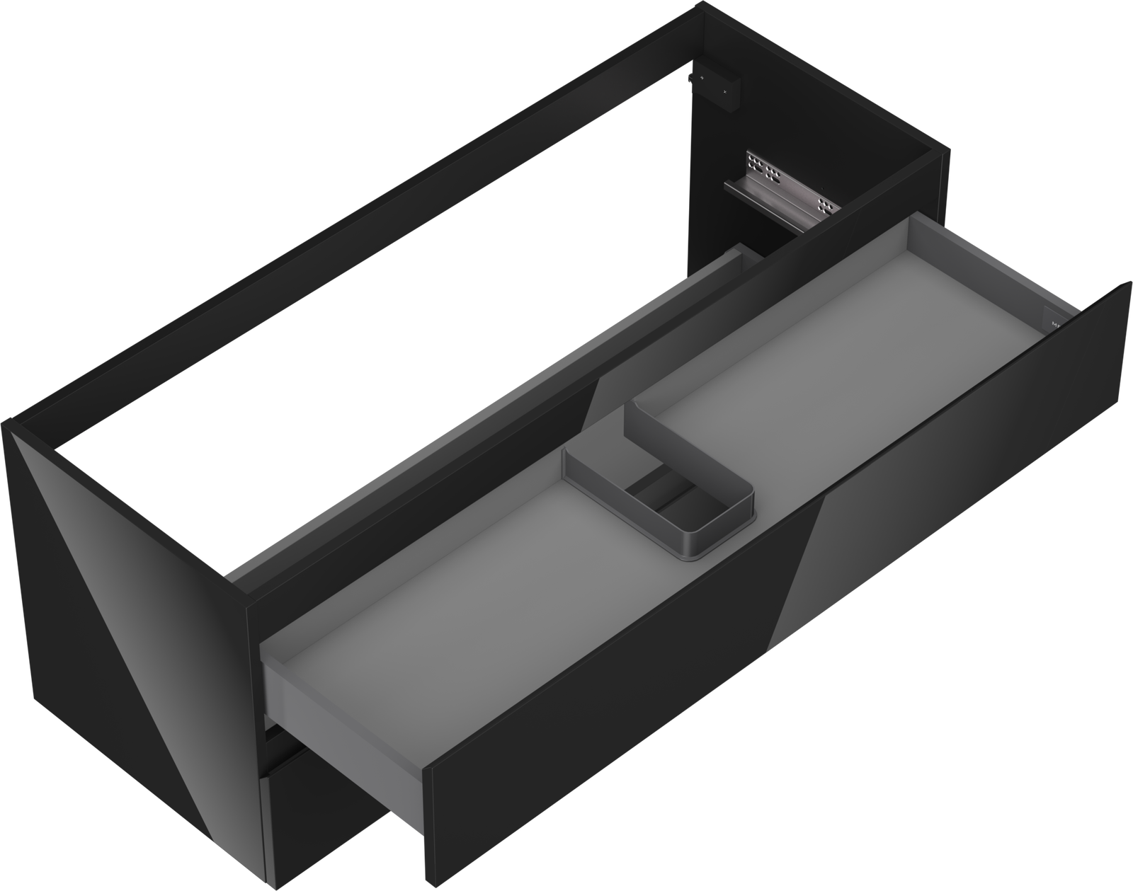 El corte en el cajón está diseñado de tal manera que pueda alojar el sifón, que es necesario en las instalaciones de lavabos. Gracias a esto, el mueble puede ser montado de manera completamente funcional, sin la necesidad de renunciar al espacio en el cajón en favor de la instalación.