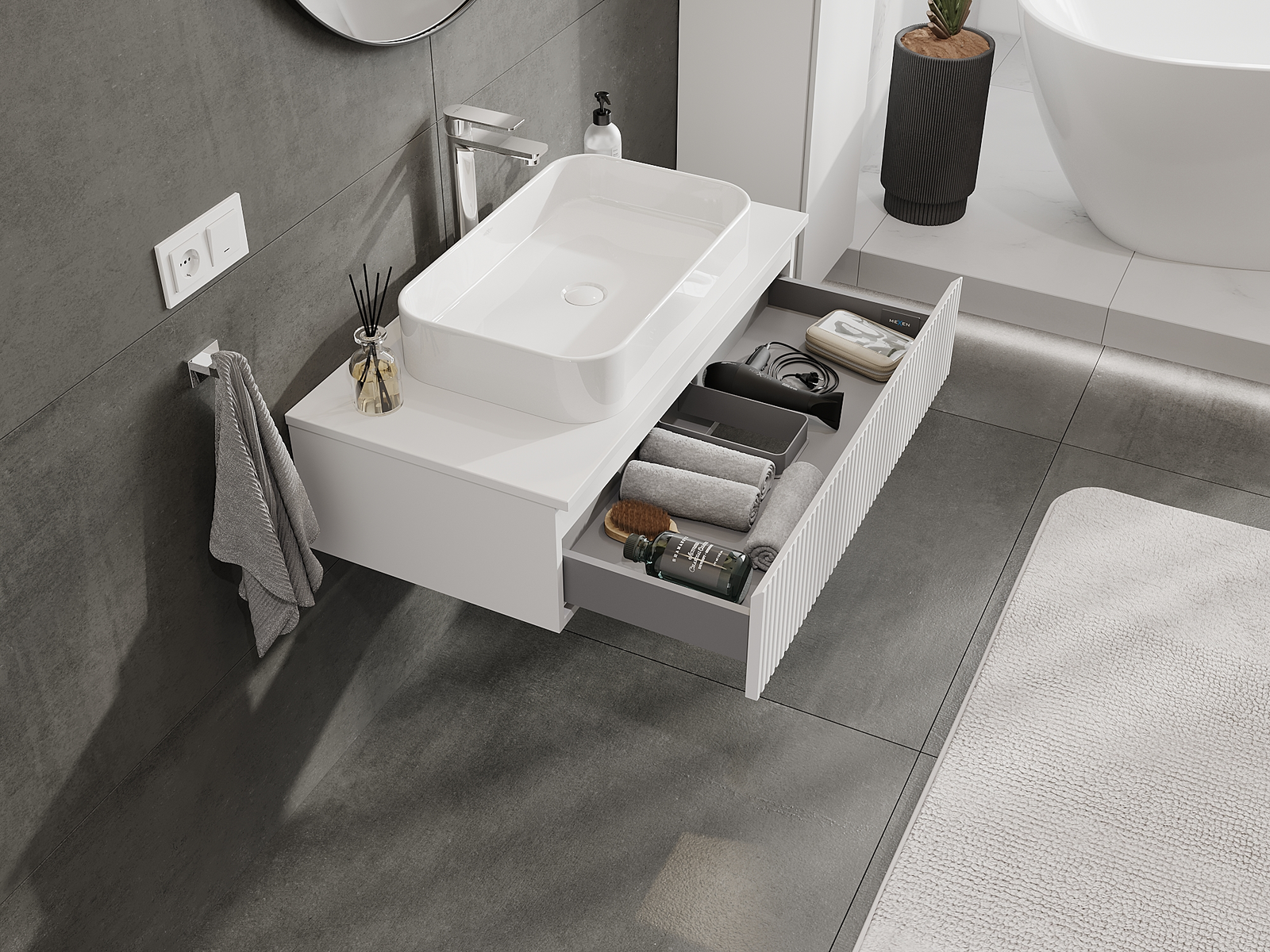 Mexen Rivel gabinete de baño bajo lavabo de 90 cm, 1 cajón, acanalado, blanco mate - 91A20-09023-1-BF01