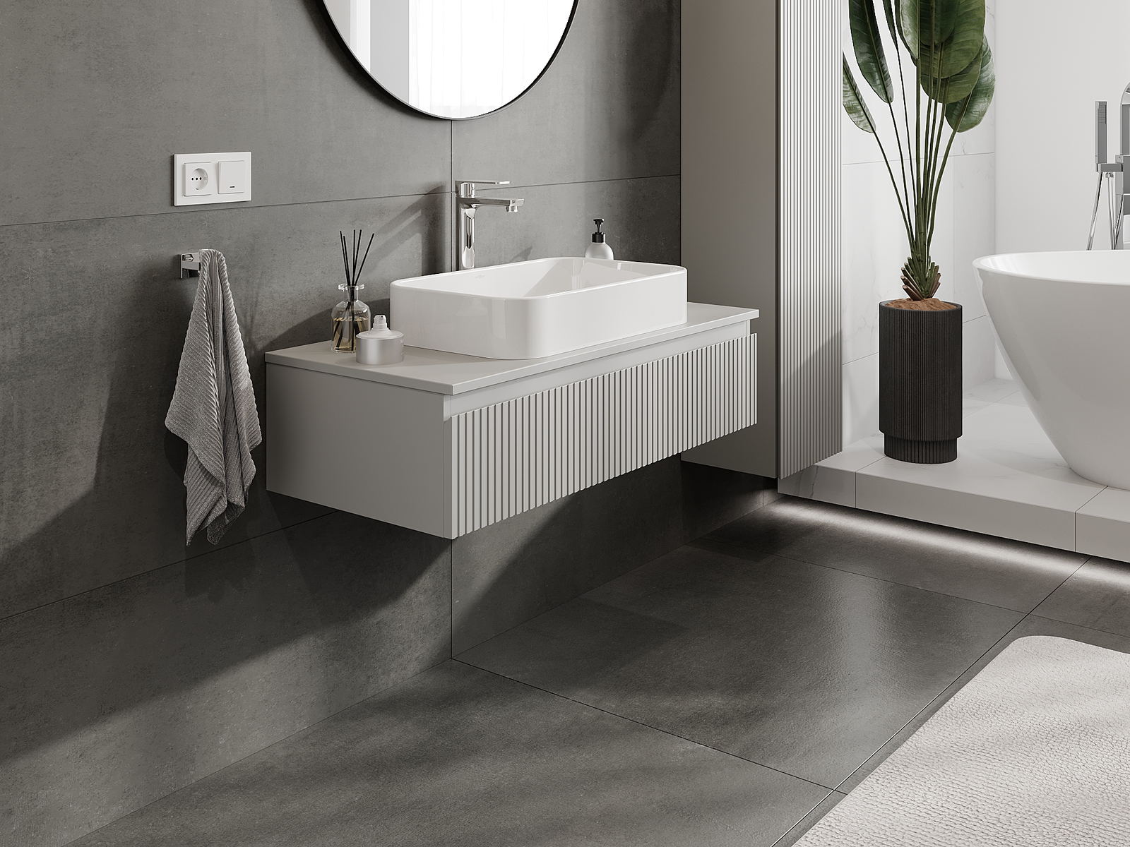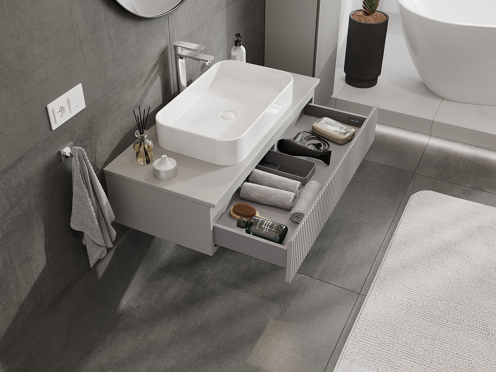 Mexen Rivel gabinete de baño bajo lavabo 100 cm, 1 cajón, ranurado, gris mate - 91A20-10023-1-BF62