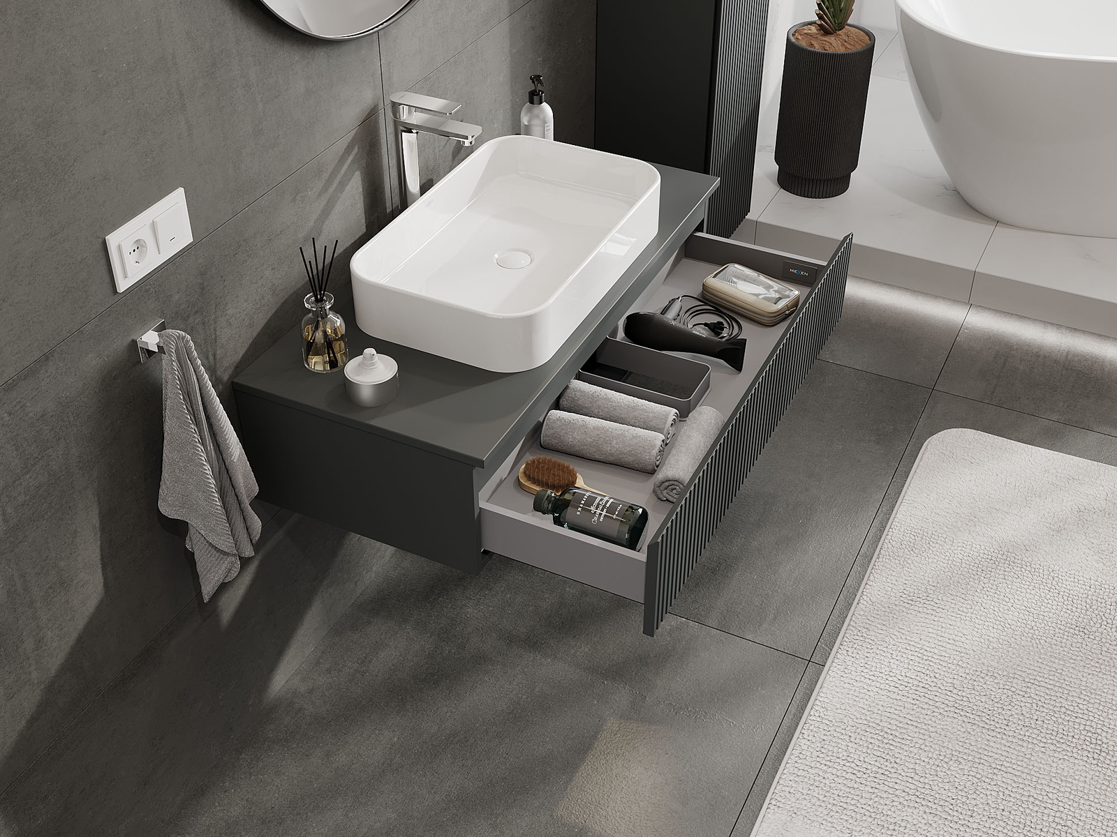 Mexen Rivel mueble de baño bajo lavabo 100 cm, 1 cajón, ranurado, grafito mate - 91A20-10023-1-BF66