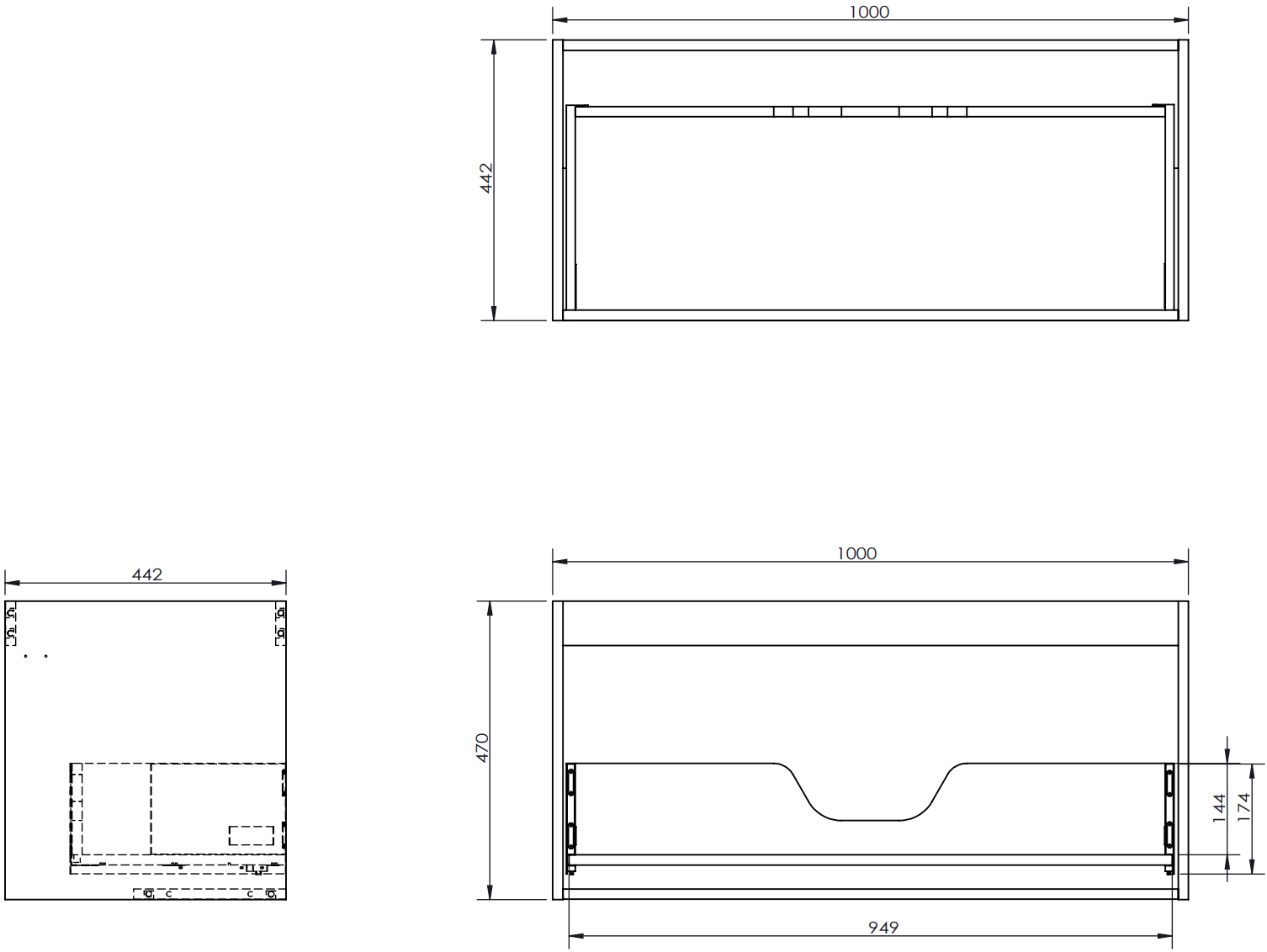 El corte en el cajón está diseñado de tal manera que pueda alojar el sifón, que es necesario en las instalaciones de lavabos. Gracias a esto, el mueble puede ser montado de manera completamente funcional, sin la necesidad de renunciar al espacio en el cajón en favor de la instalación.