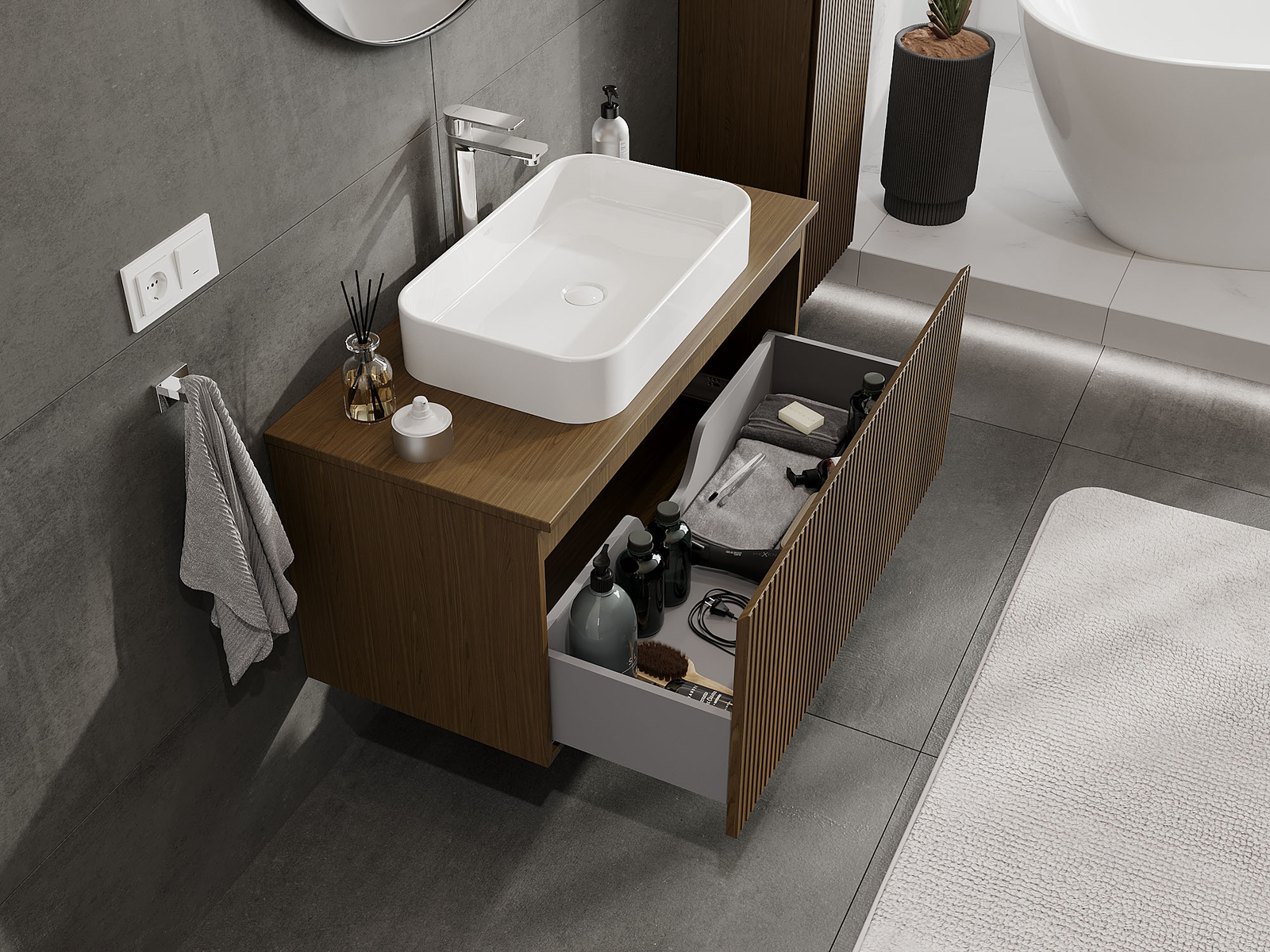 Mexen Rivel mueble de baño para lavabo de 100 cm, 1 cajón, ranurado, nogal - 91A20-10047-1-BF86