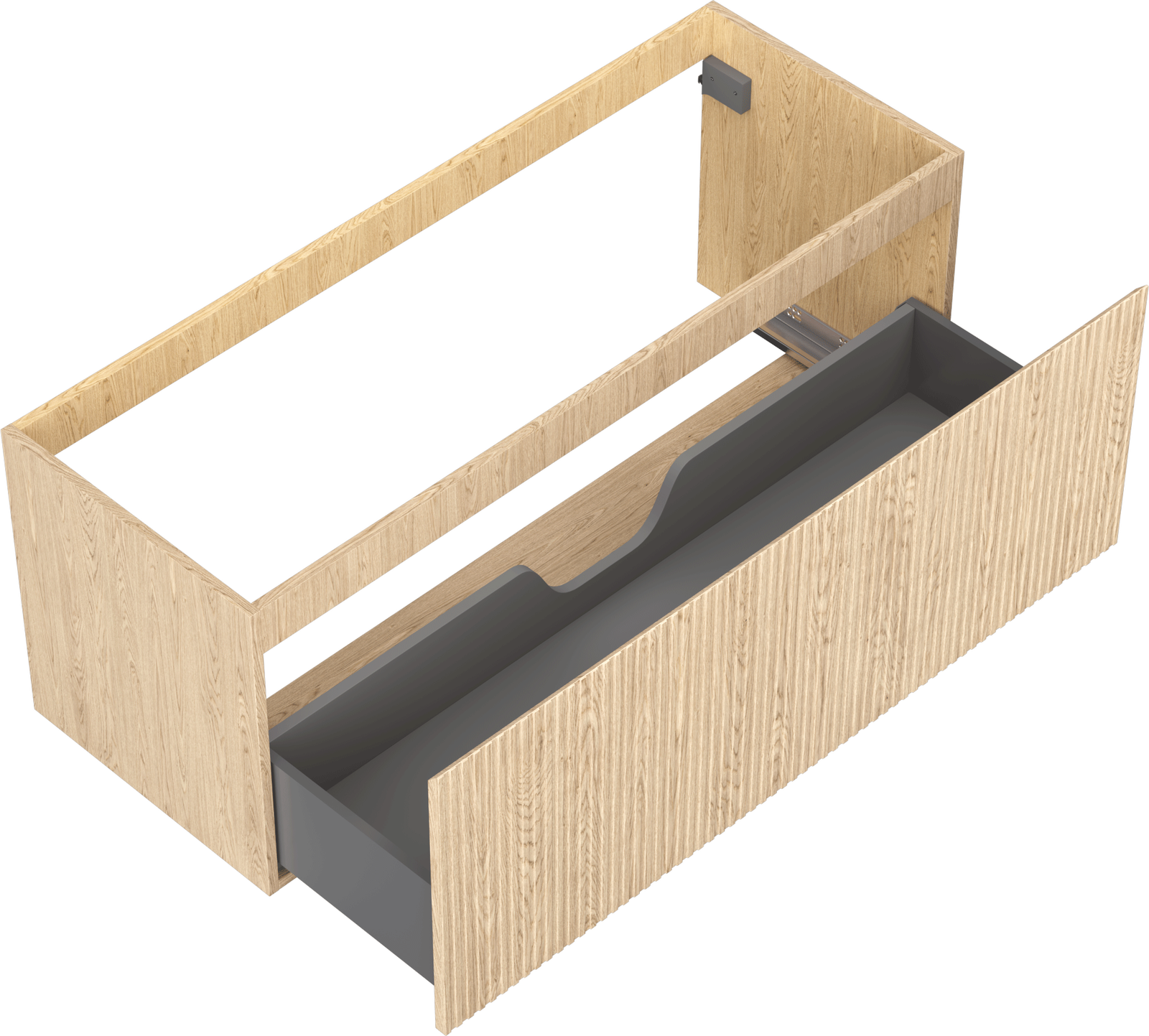 El corte en el cajón está diseñado de tal manera que pueda alojar el sifón, que es necesario en las instalaciones de lavabos. Gracias a esto, el mueble puede ser montado de manera completamente funcional, sin la necesidad de renunciar al espacio en el cajón en favor de la instalación.