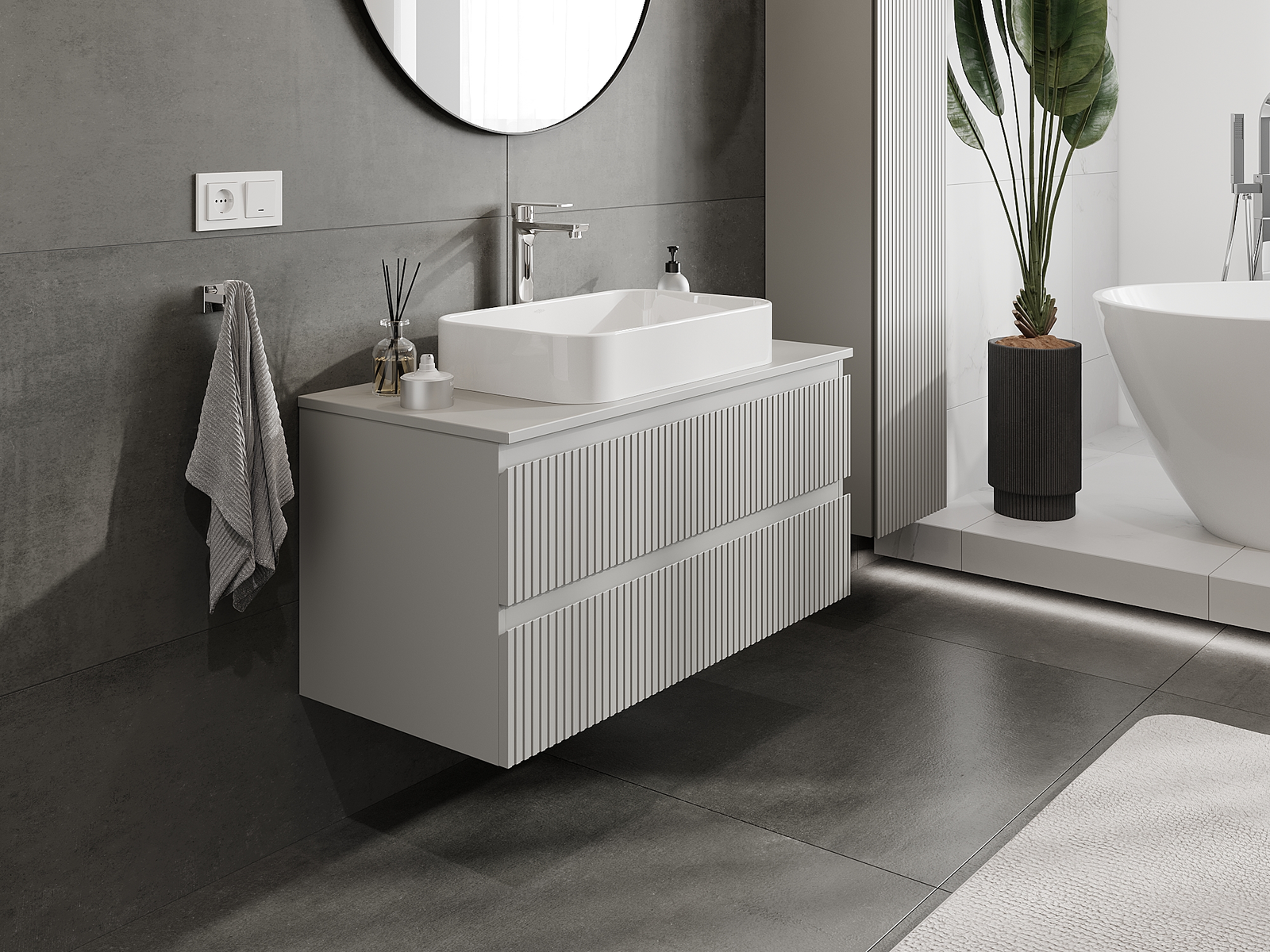 El cuerpo del gabinete se entrega completamente ensamblado, lo que significa máxima comodidad y ahorro de tiempo. No tienes que pasar horas ensamblando el mueble, solo necesitas instalarlo en el lugar elegido en el baño. Es la solución ideal para personas que valoran un montaje rápido y un efecto inmediato.