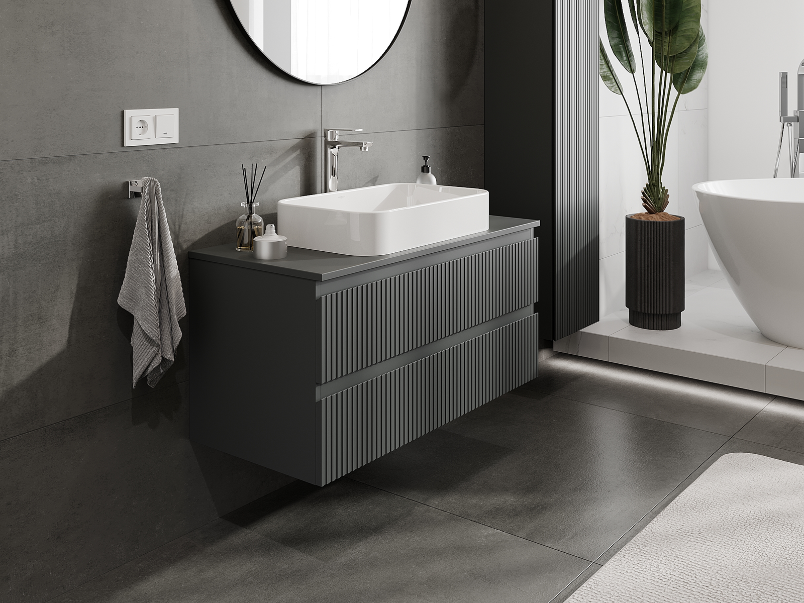 Nuestros muebles de baño modulares se pueden combinar en diferentes configuraciones de color, lo que permite una personalización completa. Se puede elegir tanto el aspecto como las funciones de los distintos elementos, lo que permite adaptar los muebles a las propias preferencias estilísticas y de uso.