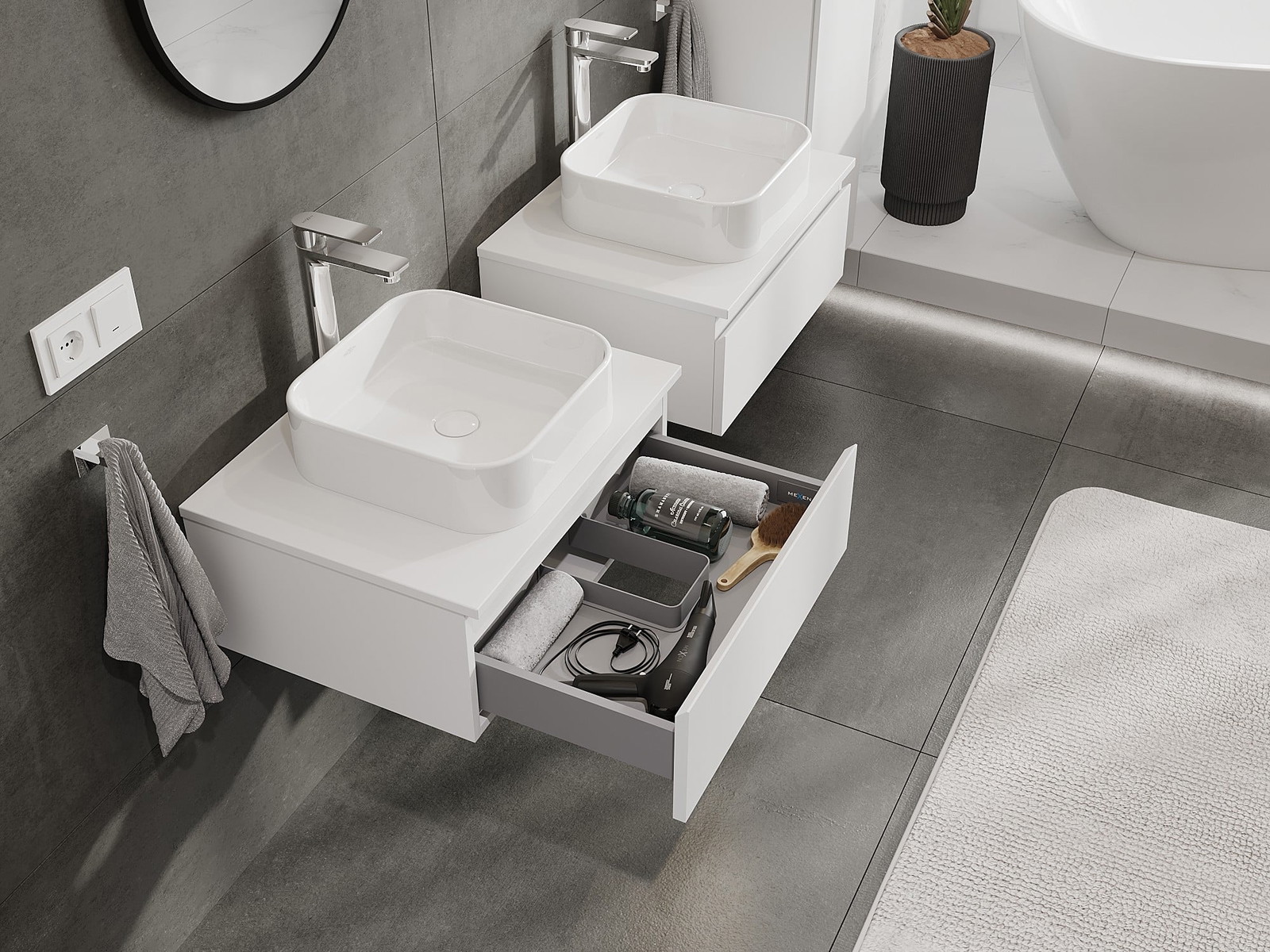 Mexen Orio gabinete de baño para lavabo de 60 cm con encimera, 1 cajón, blanco mate - 91A10-06023-1-BFC01