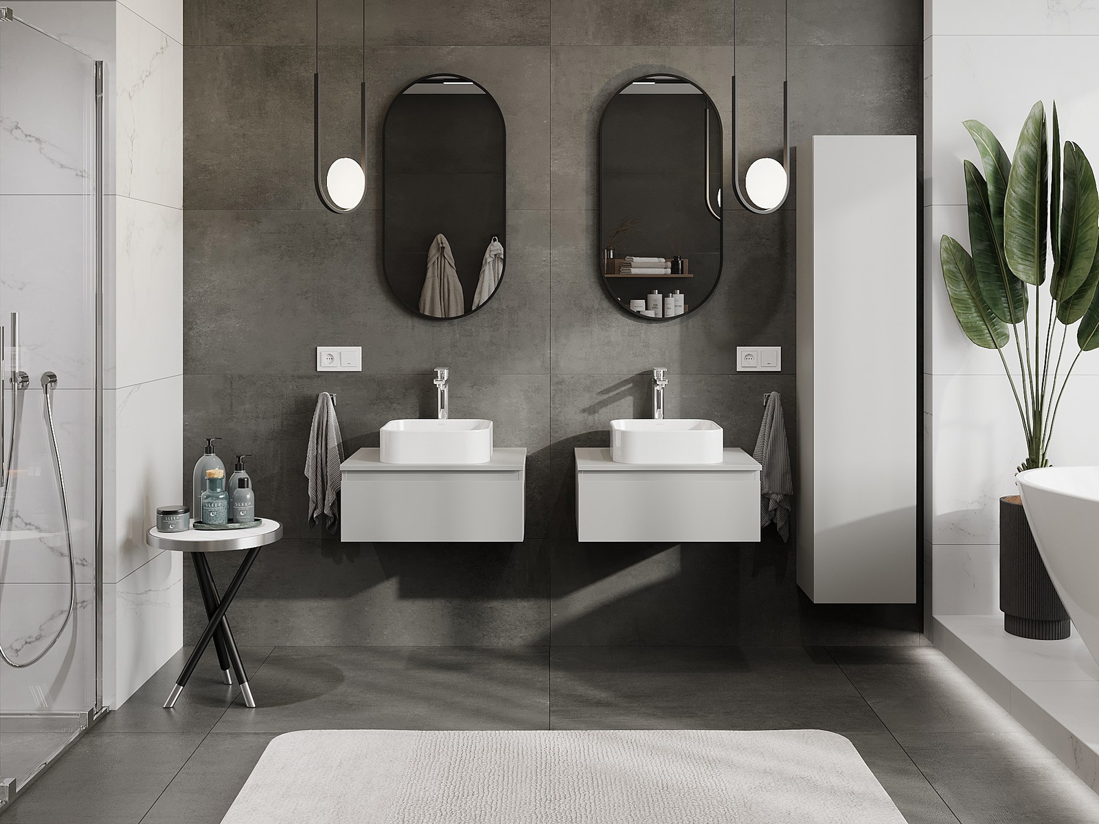 El cuerpo del gabinete se entrega completamente ensamblado, lo que significa máxima comodidad y ahorro de tiempo. No tienes que pasar horas ensamblando el mueble, solo necesitas instalarlo en el lugar elegido en el baño. Es la solución ideal para personas que valoran un montaje rápido y un efecto inmediato.