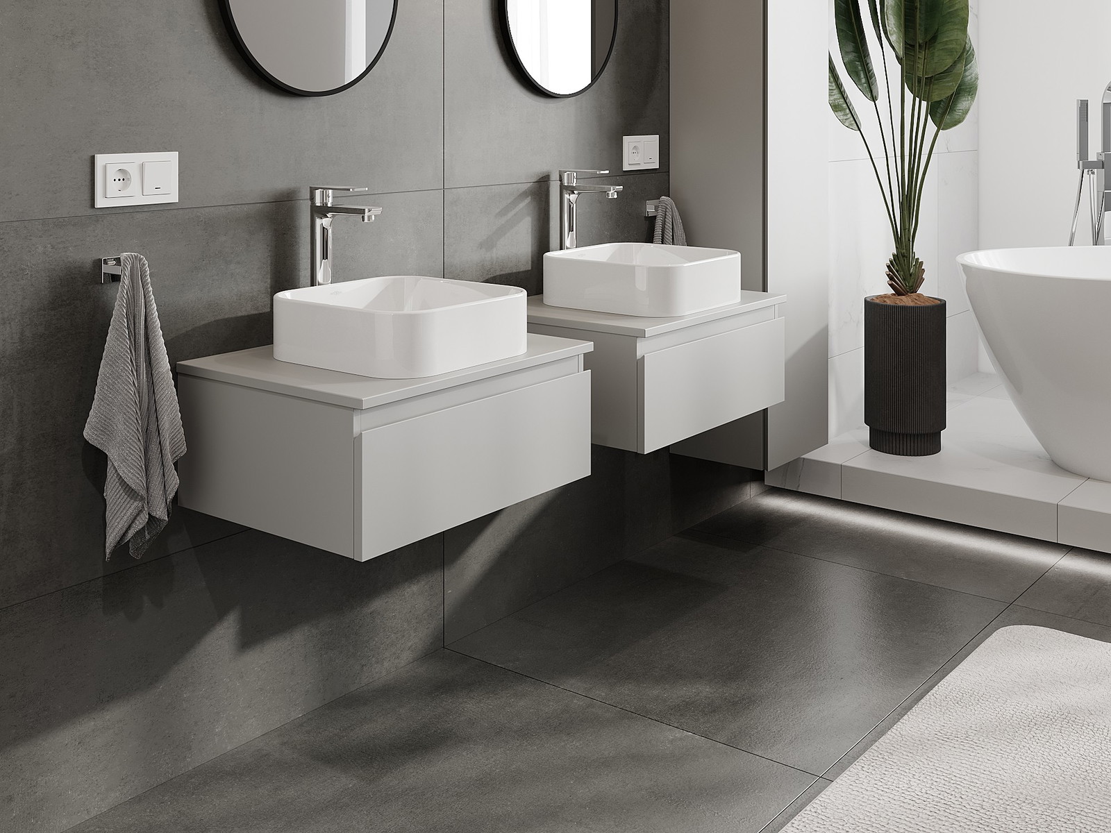 Nuestros muebles de baño modulares se pueden combinar en diferentes configuraciones de color, lo que permite una personalización completa. Se puede elegir tanto el aspecto como las funciones de los distintos elementos, lo que permite adaptar los muebles a las propias preferencias estilísticas y de uso.