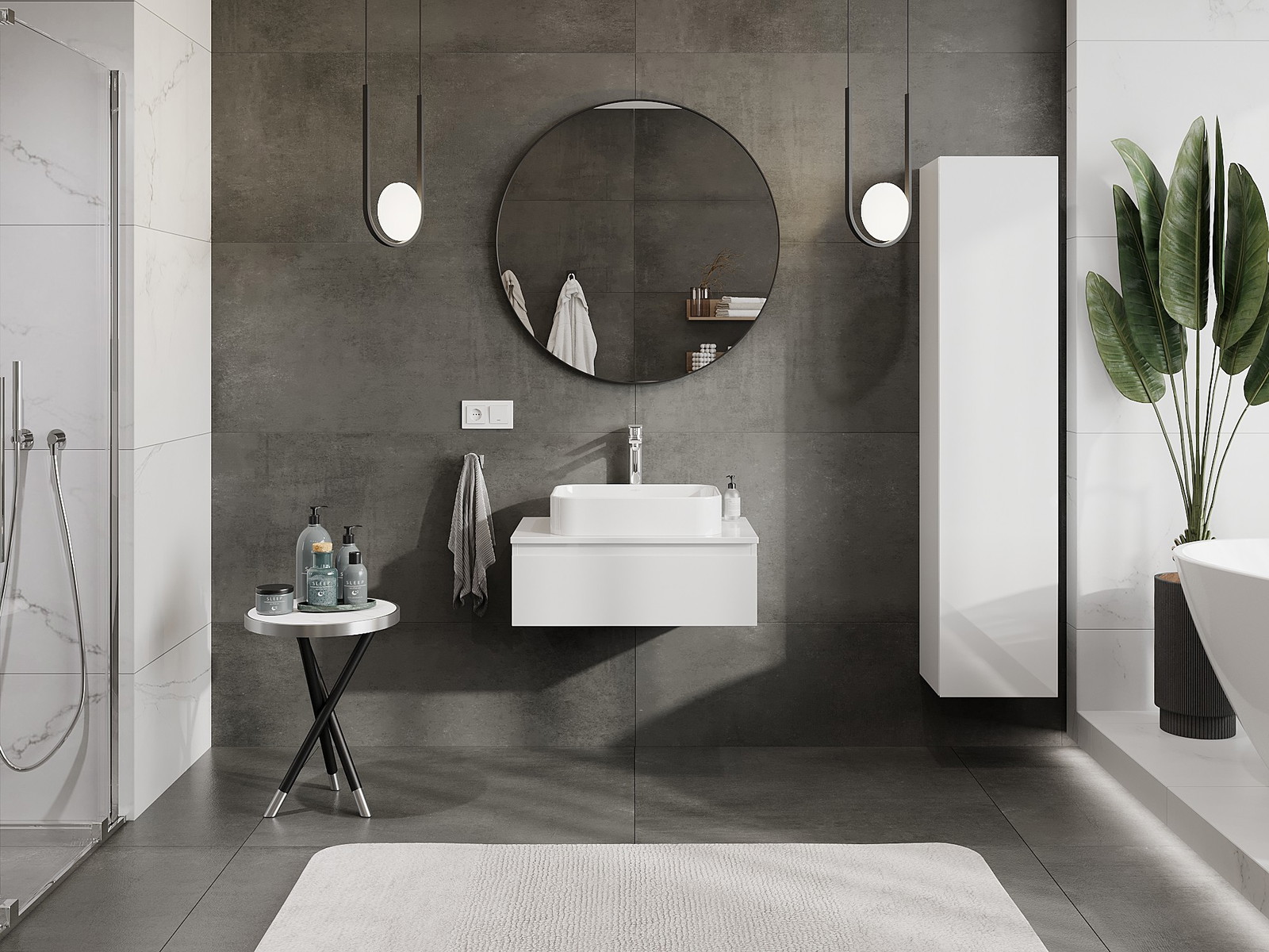 El cuerpo del gabinete se entrega completamente ensamblado, lo que significa máxima comodidad y ahorro de tiempo. No tienes que pasar horas ensamblando el mueble, solo necesitas instalarlo en el lugar elegido en el baño. Es la solución ideal para personas que valoran un montaje rápido y un efecto inmediato.