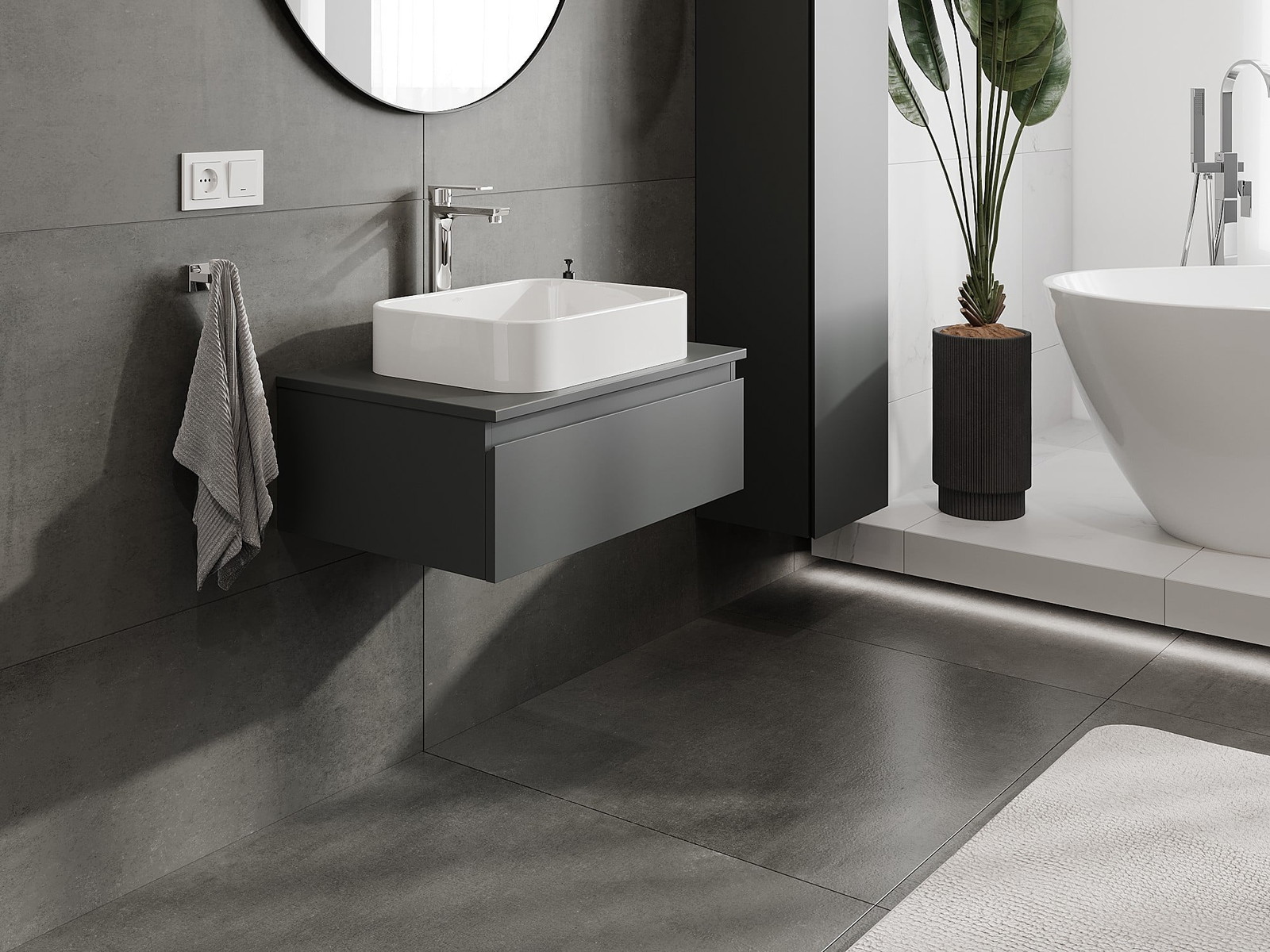 Nuestros muebles de baño modulares se pueden combinar en diferentes configuraciones de color, lo que permite una personalización completa. Se puede elegir tanto el aspecto como las funciones de los distintos elementos, lo que permite adaptar los muebles a las propias preferencias estilísticas y de uso.