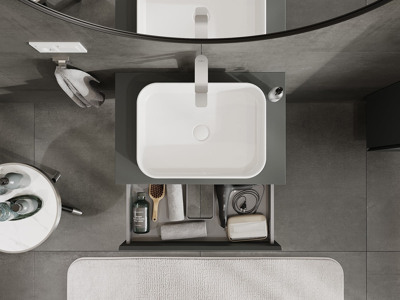 El cuerpo del gabinete se entrega completamente ensamblado, lo que significa máxima comodidad y ahorro de tiempo. No tienes que pasar horas ensamblando el mueble, solo necesitas instalarlo en el lugar elegido en el baño. Es la solución ideal para personas que valoran un montaje rápido y un efecto inmediato.