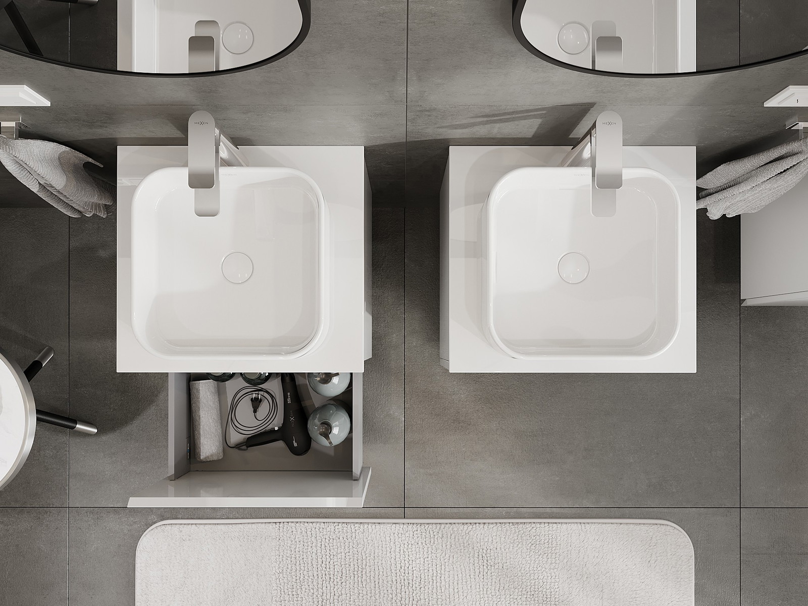 Mexen Orio mueble de baño debajo del lavabo de 50 cm con encimera, 1 cajón, blanco brillante - 91A10-05047-1-BFC00