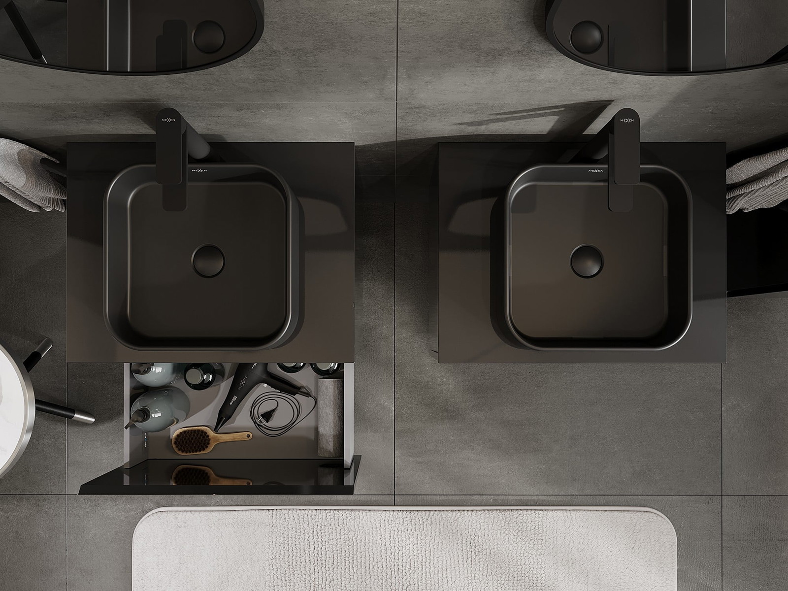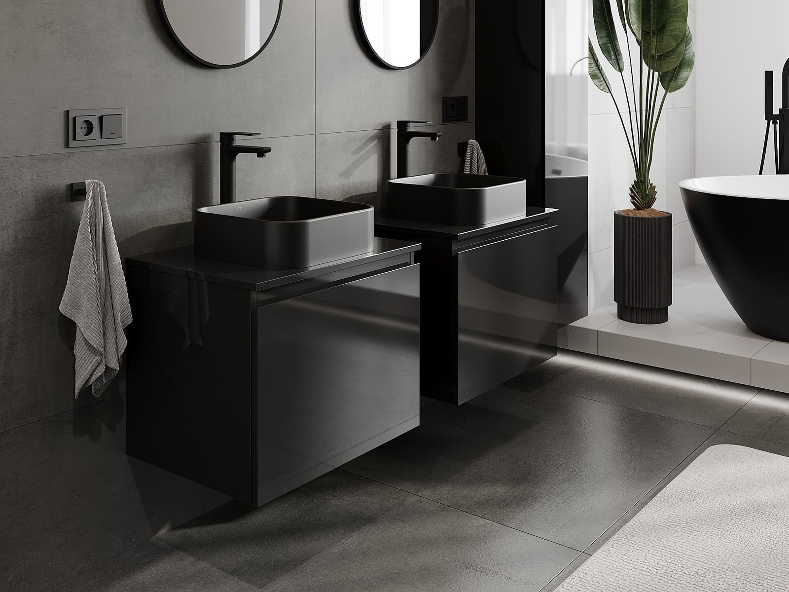 Mexen Orio mueble de baño bajo lavabo 60 cm con encimera, 1 cajón, negro brillo - 91A10-06047-1-BFC70