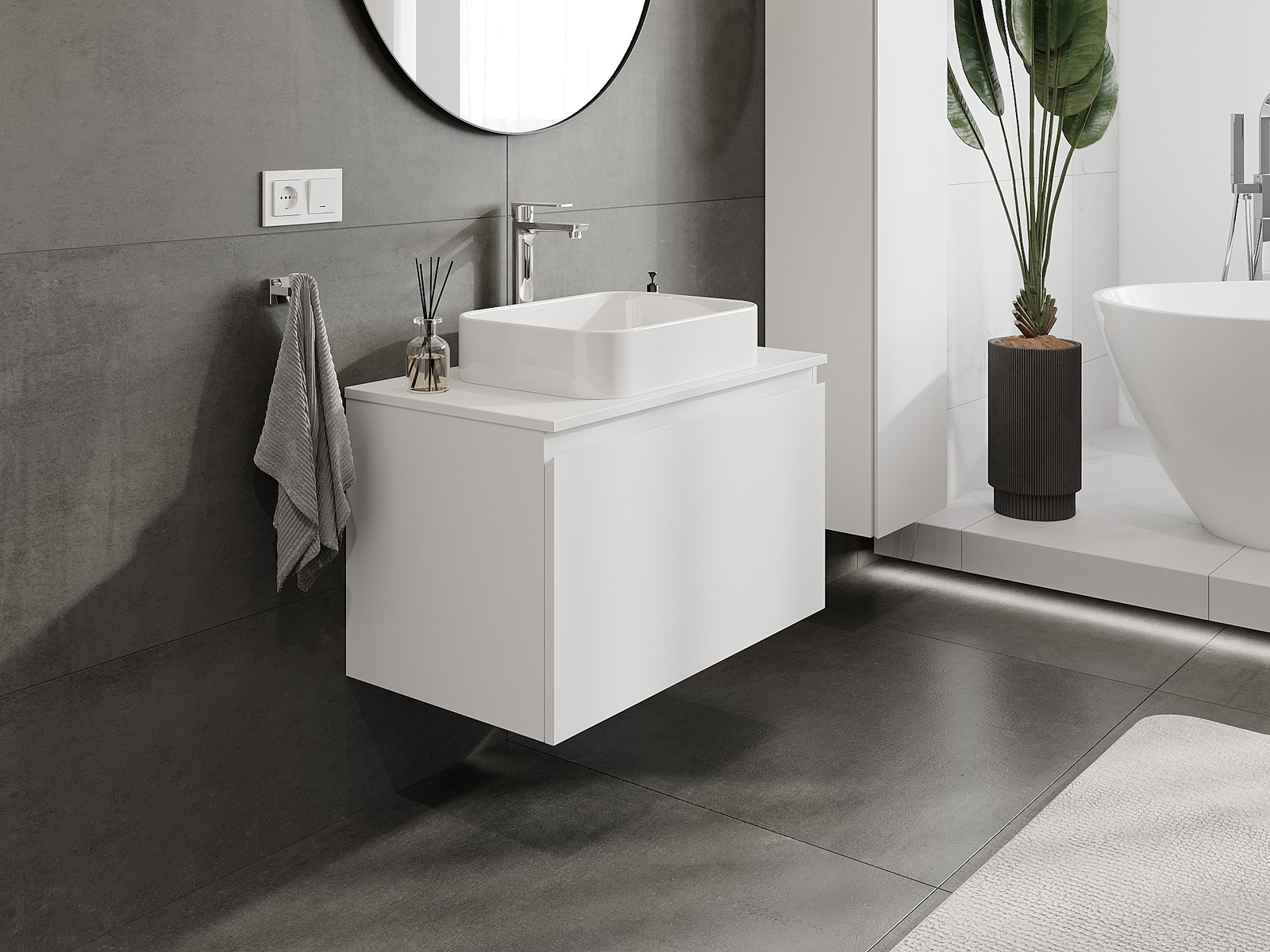 Nuestros muebles de baño modulares se pueden combinar en diferentes configuraciones de color, lo que permite una personalización completa. Se puede elegir tanto el aspecto como las funciones de los distintos elementos, lo que permite adaptar los muebles a las propias preferencias estilísticas y de uso.