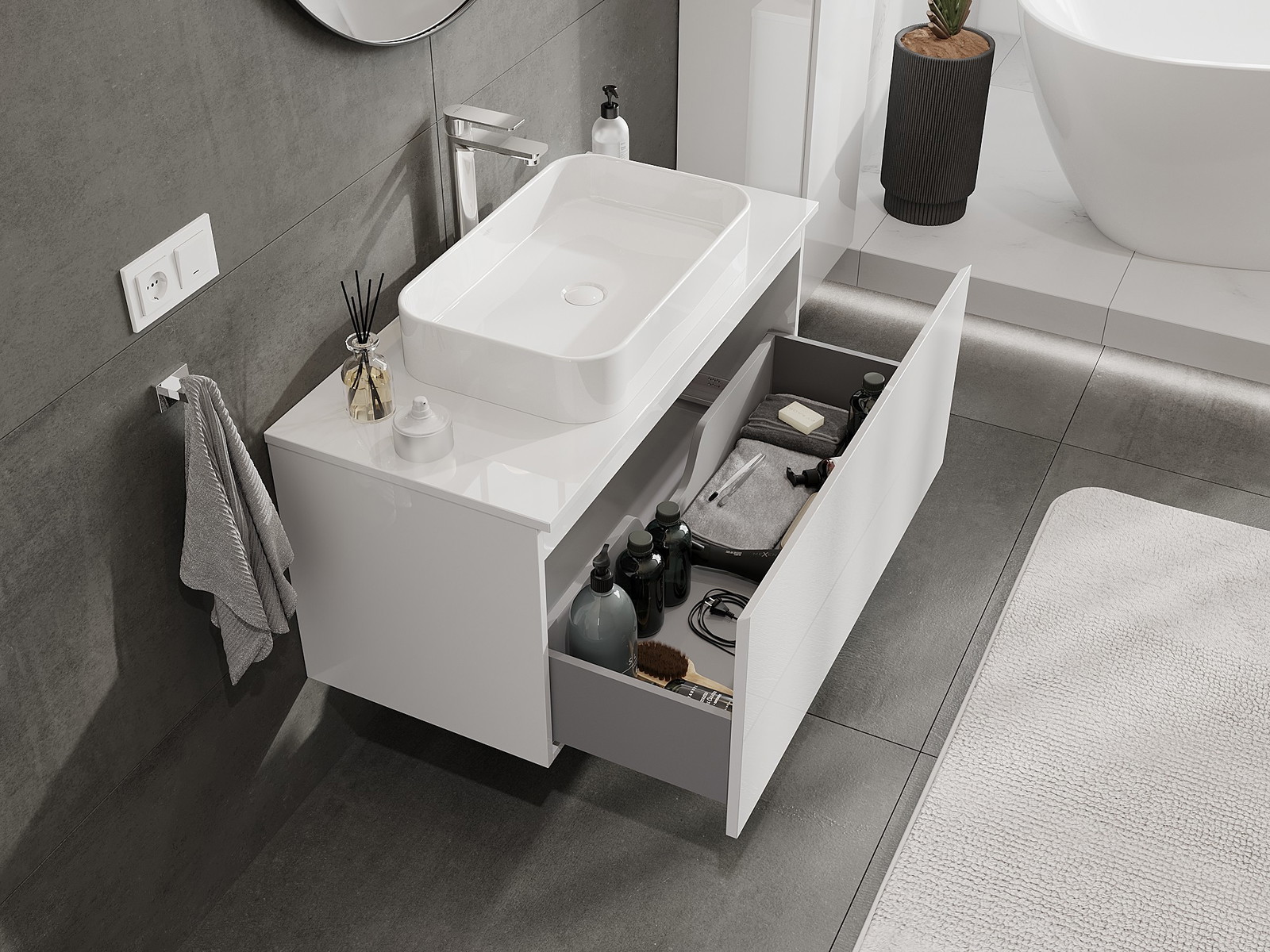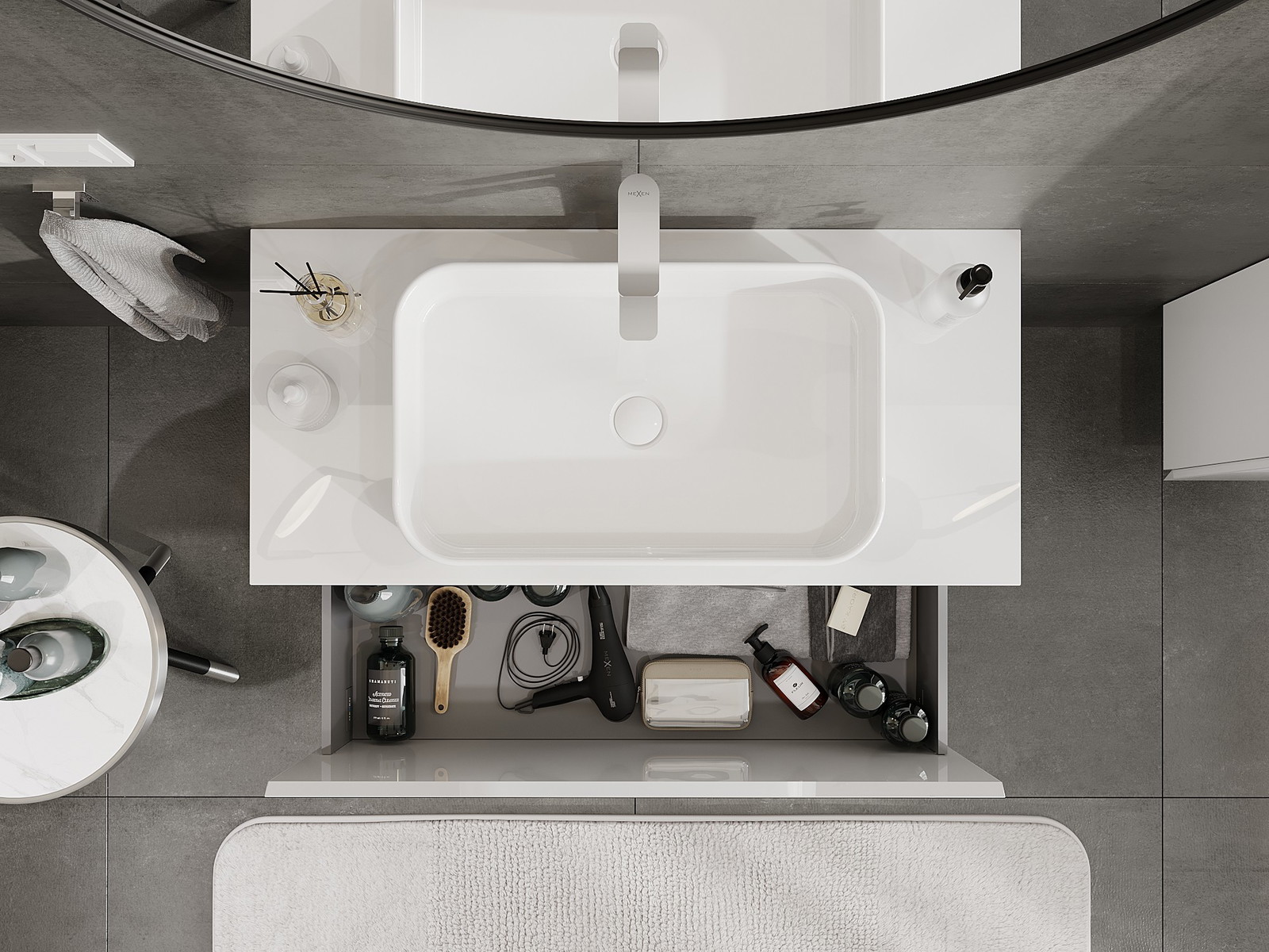 Mexen Orio armario de baño bajo lavabo 100 cm con encimera, 1 cajón, brillo blanco - 91A10-10047-1-BFC00