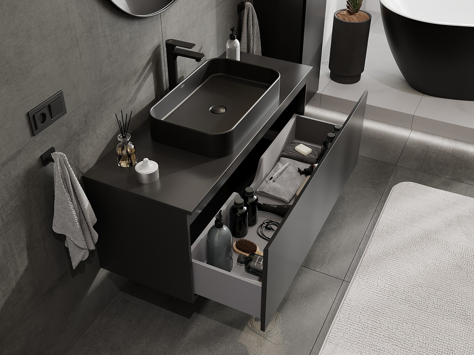 Nuestros muebles de baño modulares se pueden combinar en diferentes configuraciones de color, lo que permite una personalización completa. Se puede elegir tanto el aspecto como las funciones de los distintos elementos, lo que permite adaptar los muebles a las propias preferencias estilísticas y de uso.