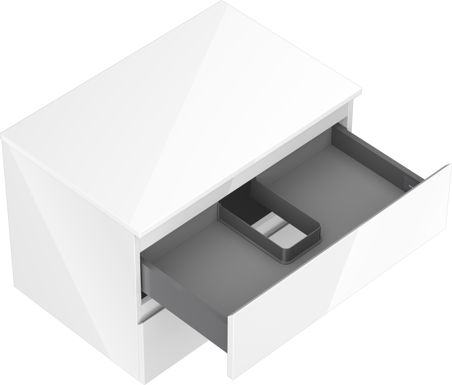 El corte en el cajón está diseñado de tal manera que pueda alojar el sifón, que es necesario en las instalaciones de lavabos. Gracias a esto, el mueble puede ser montado de manera completamente funcional, sin la necesidad de renunciar al espacio en el cajón en favor de la instalación.
