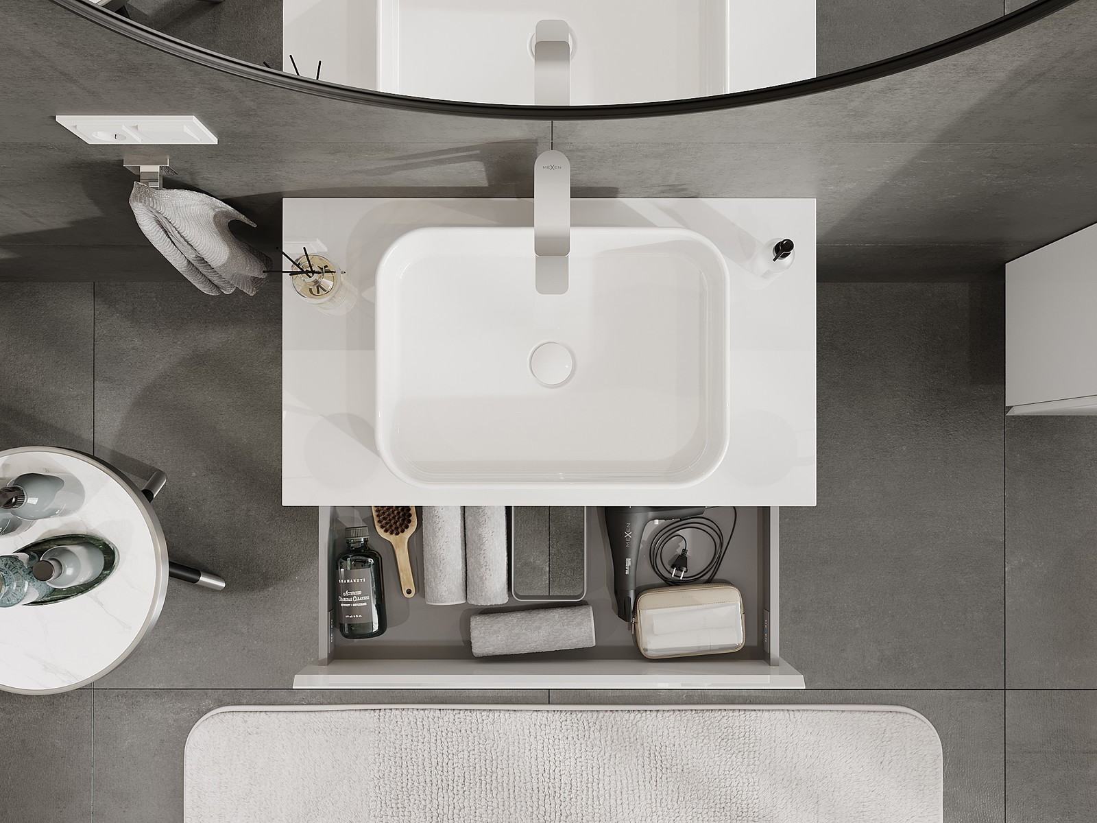 El cuerpo del gabinete se entrega completamente ensamblado, lo que significa máxima comodidad y ahorro de tiempo. No tienes que pasar horas ensamblando el mueble, solo necesitas instalarlo en el lugar elegido en el baño. Es la solución ideal para personas que valoran un montaje rápido y un efecto inmediato.