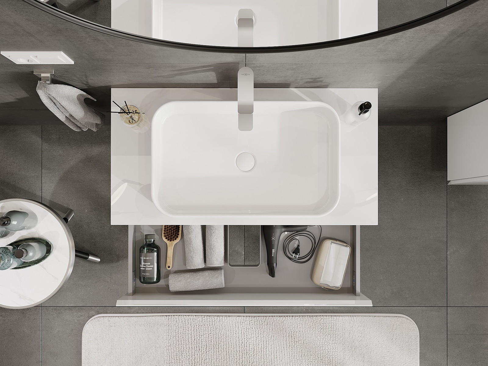 El cuerpo del gabinete se entrega completamente ensamblado, lo que significa máxima comodidad y ahorro de tiempo. No tienes que pasar horas ensamblando el mueble, solo necesitas instalarlo en el lugar elegido en el baño. Es la solución ideal para personas que valoran un montaje rápido y un efecto inmediato.