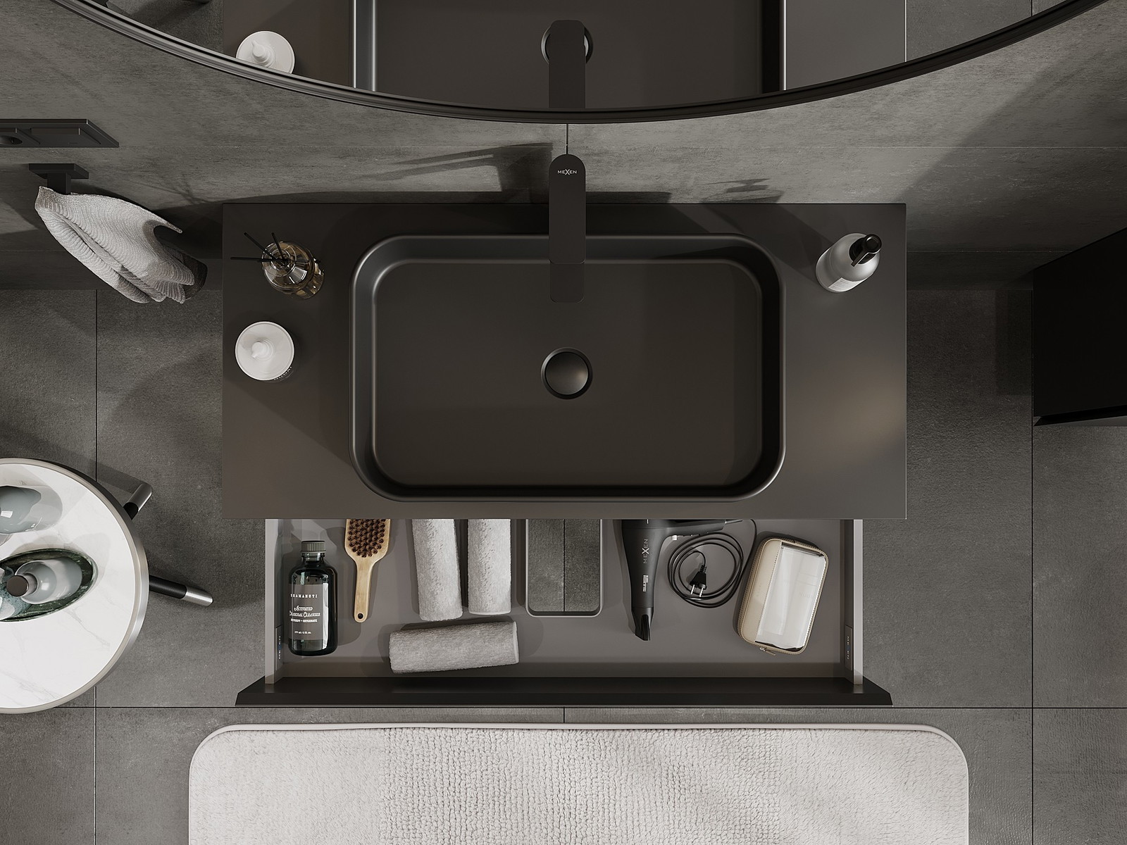El cuerpo del gabinete se entrega completamente ensamblado, lo que significa máxima comodidad y ahorro de tiempo. No tienes que pasar horas ensamblando el mueble, solo necesitas instalarlo en el lugar elegido en el baño. Es la solución ideal para personas que valoran un montaje rápido y un efecto inmediato.