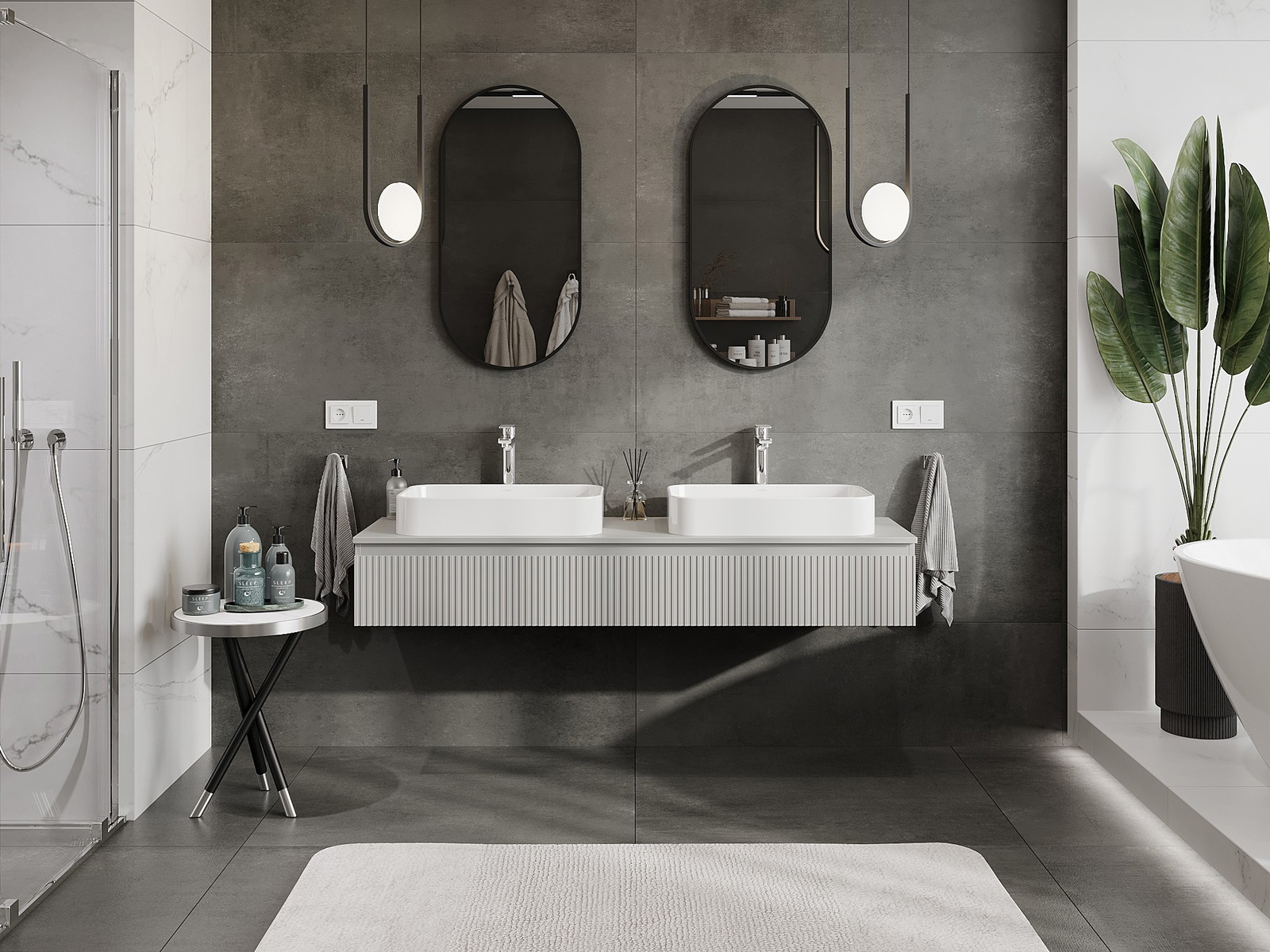 Mexen Rivel gabinete de baño bajo lavabo de 160 cm con encimera, 1 cajón, ranurado, gris mate - 91A20-16023-1-BFC62